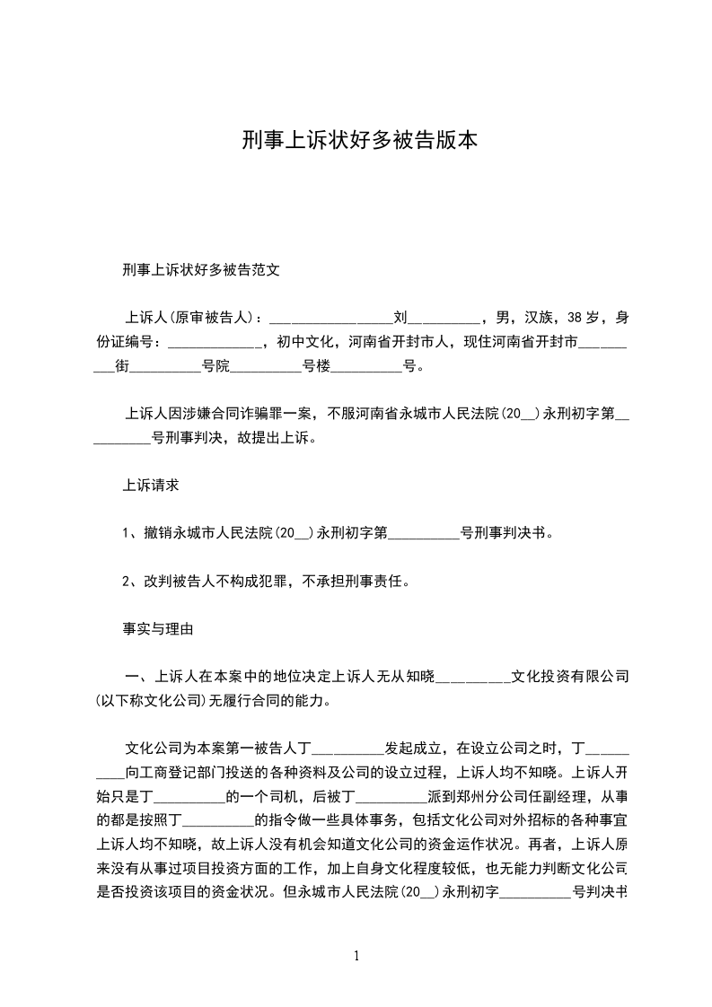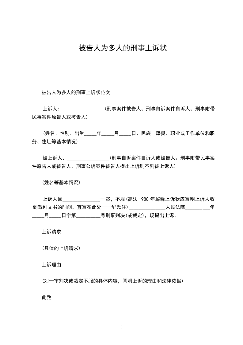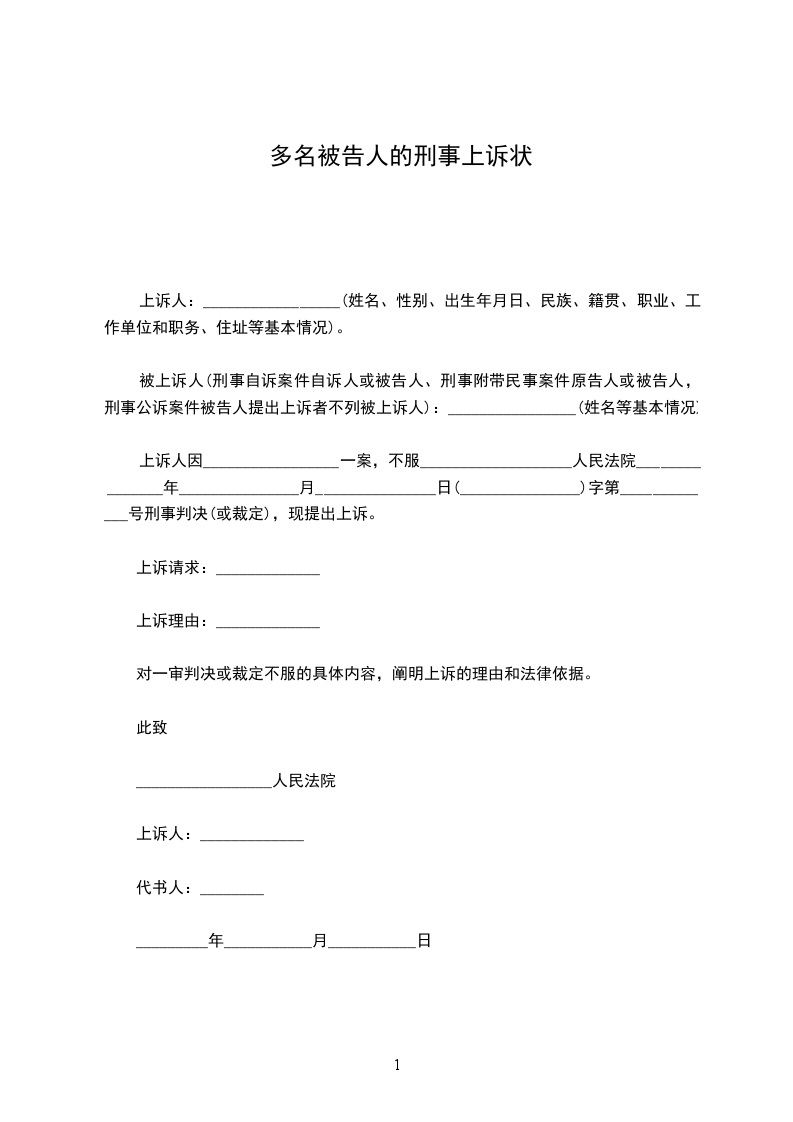 被上诉人:_________________(刑事上诉状无被上诉人)