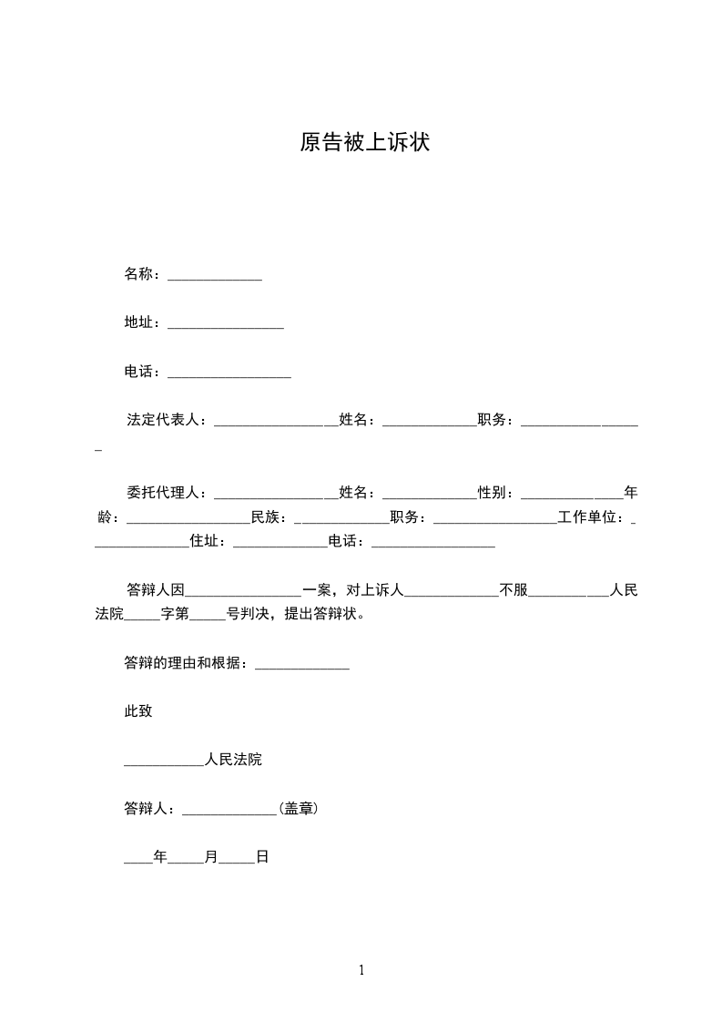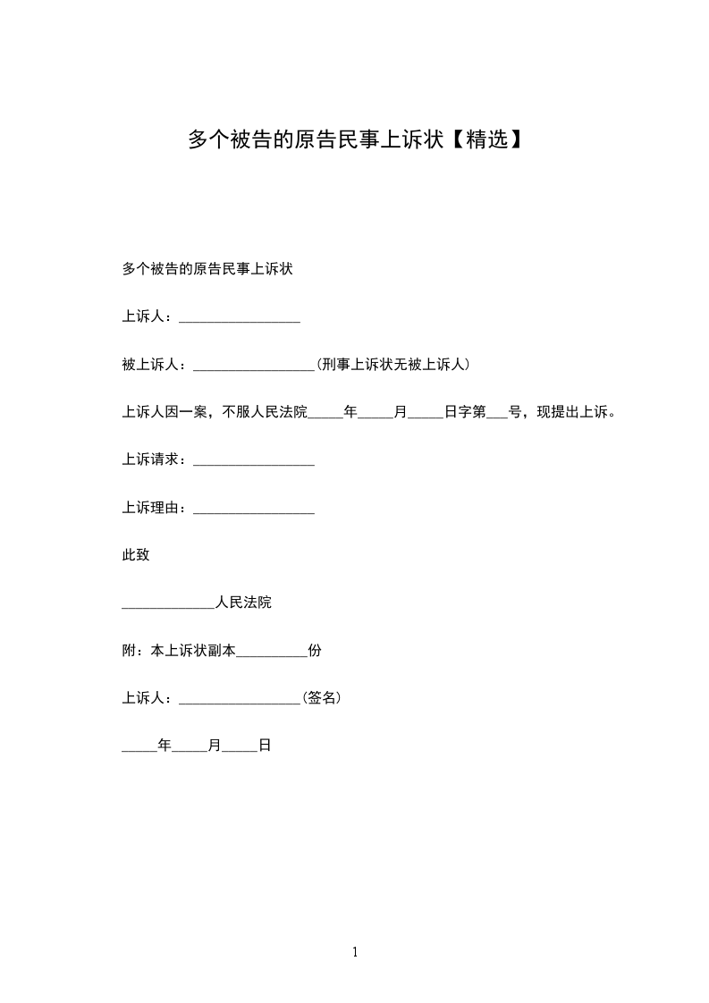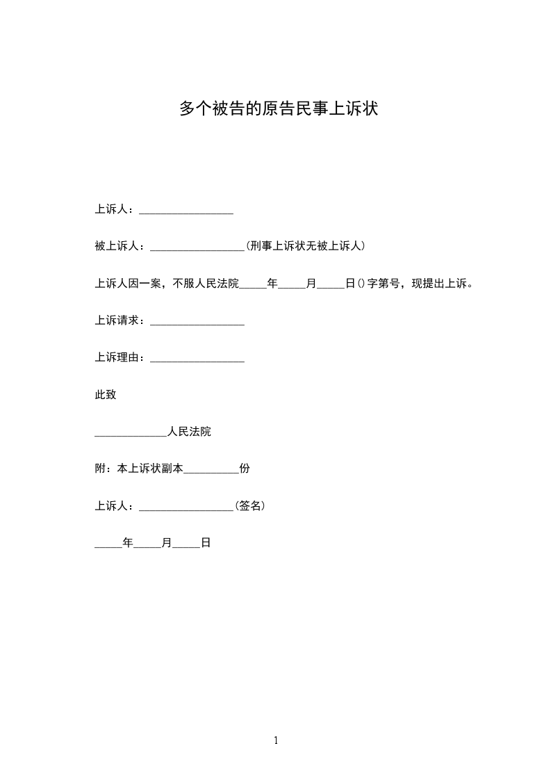 附:本上诉状副本__________份