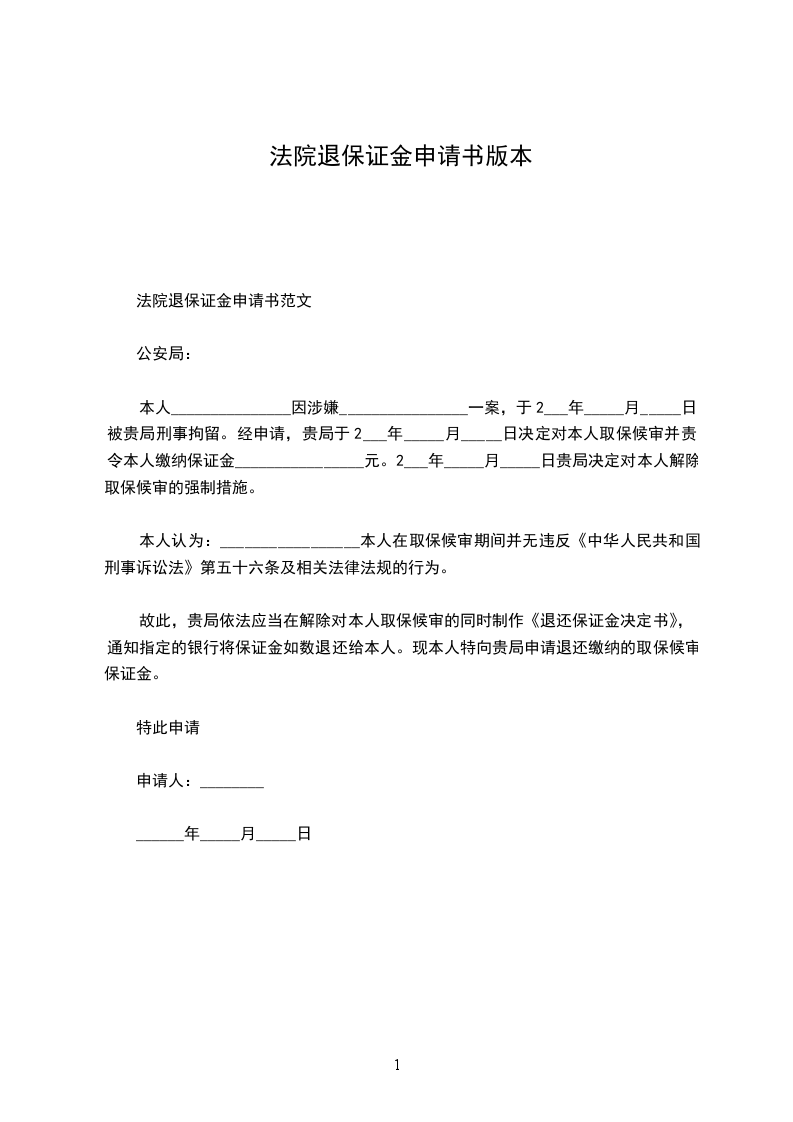 现该案已胜诉并进入执行程序,申请人特向贵院申请退回所缴纳的财产保全保证金至如下帐户:
