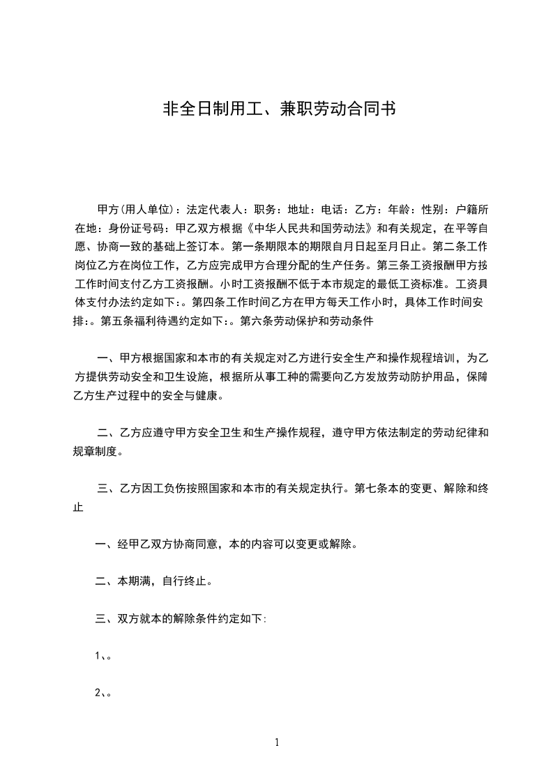 3.1乙方在被聘用期间执行非全日制工作制,每周正常工作时间为24小时。