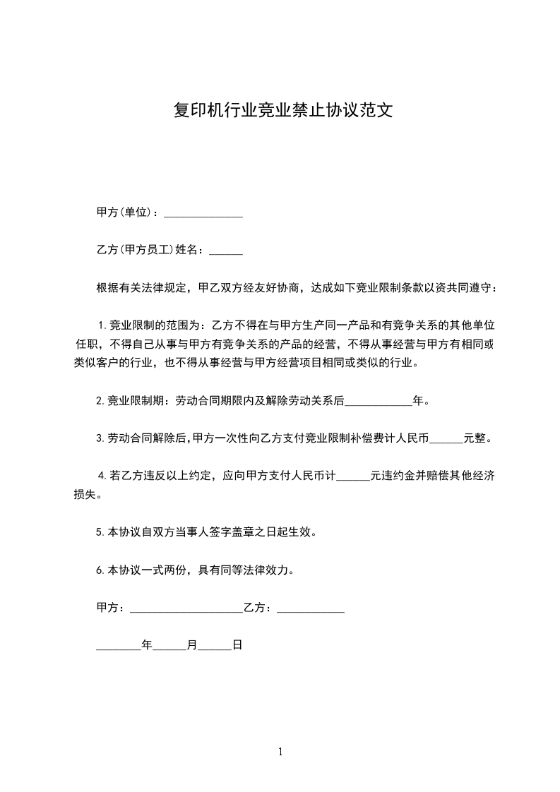 1、竞业限制期限为员工与公司任何一方与对方终止或解除劳动合同之日起的____个月内,员工不得自营或为他人经营与公司有竞争的业务;