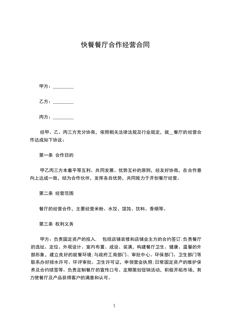 1、甲方按约定提供餐厅给乙方经营餐饮,保证乙方独立自主经营。