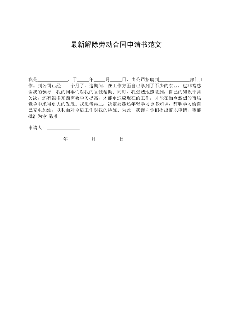 我是_____________,于_____年_____月_____日,由公司招聘到_____________部门工作。到公司已经____个月了,这期间,在工作方面自己学到了不少的东西,也非常感谢我的领导、我的同事们对我的真诚帮助。同时,我强烈地感觉到,自己的知识非常欠缺,还有很多东西需要学习提高,才能更适应现在的工作,才能在当今激烈的市场竞争中求得更大的发展。我思考再三,决定要趁还年轻学习更多知识,辞职学习给自己充电加油,以利面对今后工作对我的挑战。为此,我谨向你们提出辞职申请,望能批准为谢!致礼 申请人:______________ _______________年__________月__________日