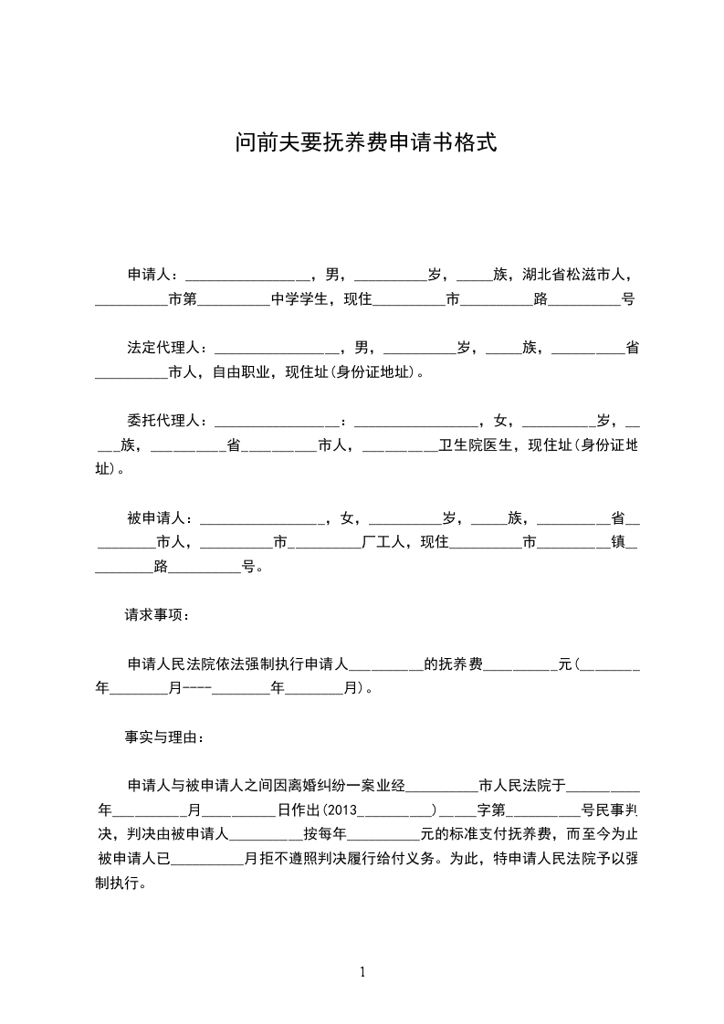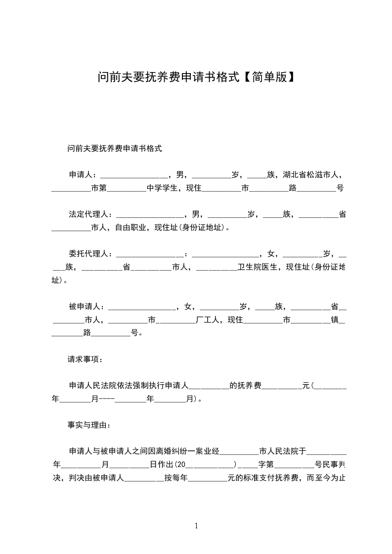 申请人:_________________,男,__________岁,_____族,湖北省松滋市人,__________市第__________中学学生,现住__________市__________路__________号。