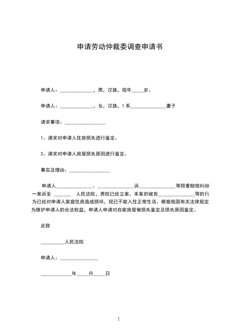 1、请求对申请人住房损失进行鉴定。