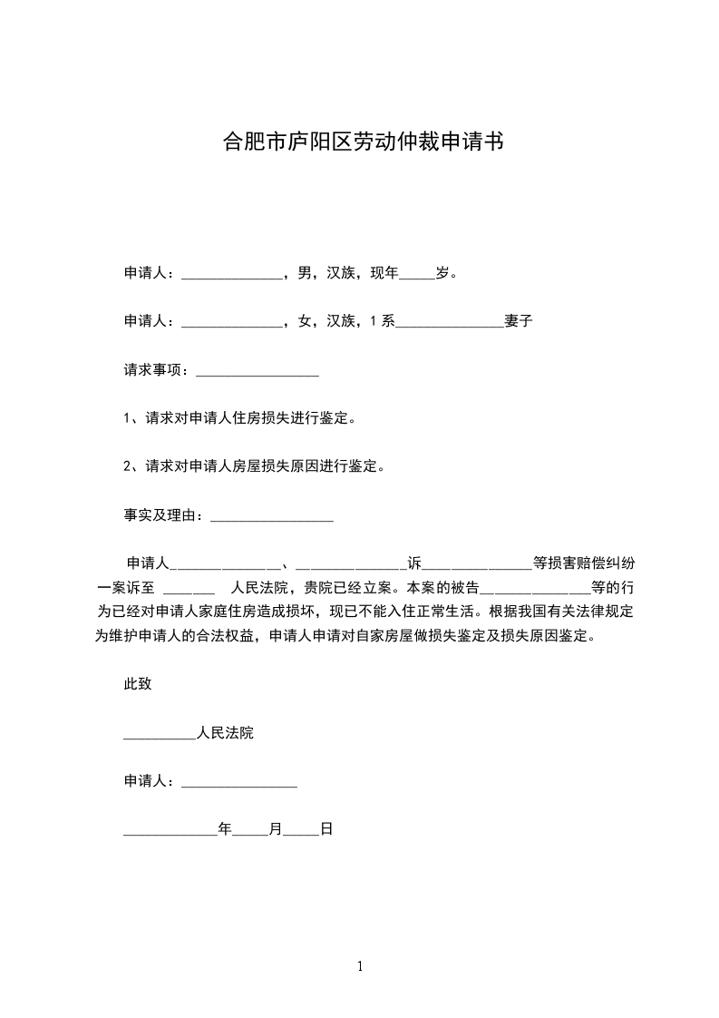申请人:______________,男,汉族,现年_____岁。
