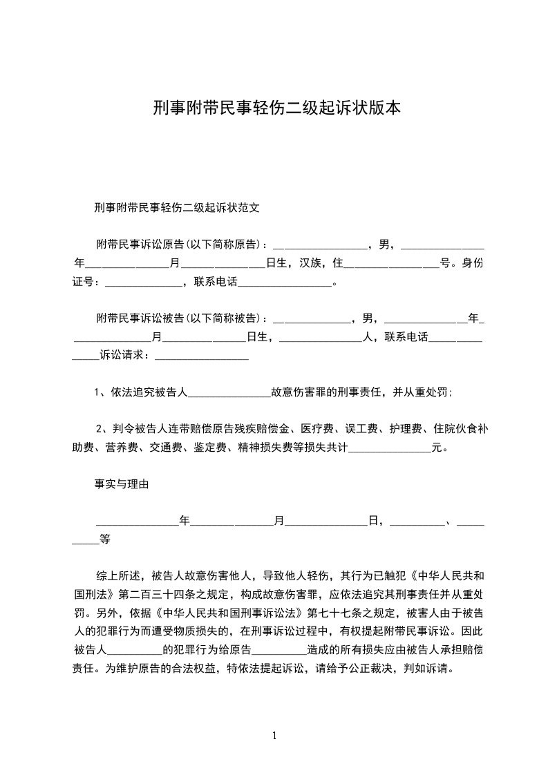 1、依法追究被告人_______________故意伤害罪的刑事责任,并从重处罚;