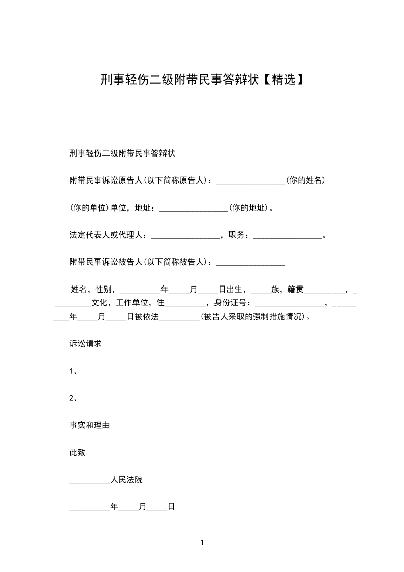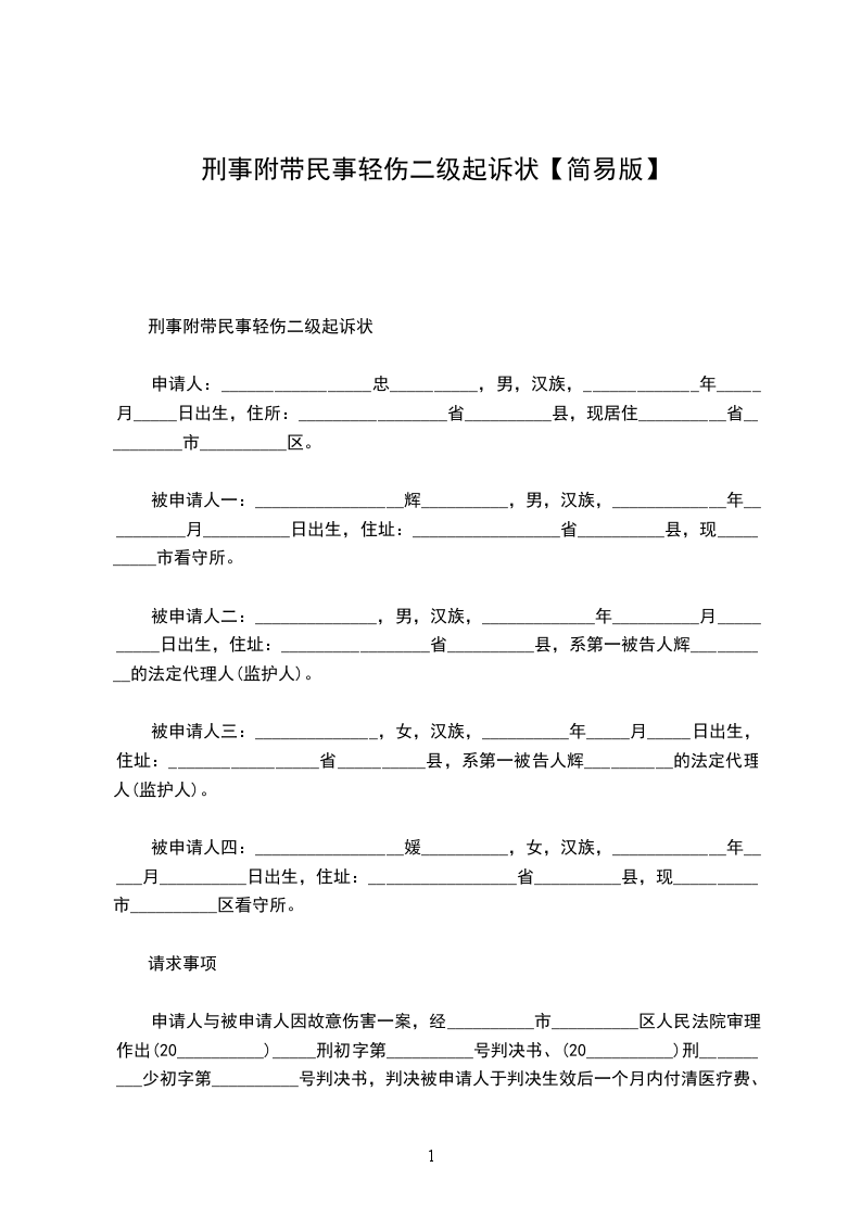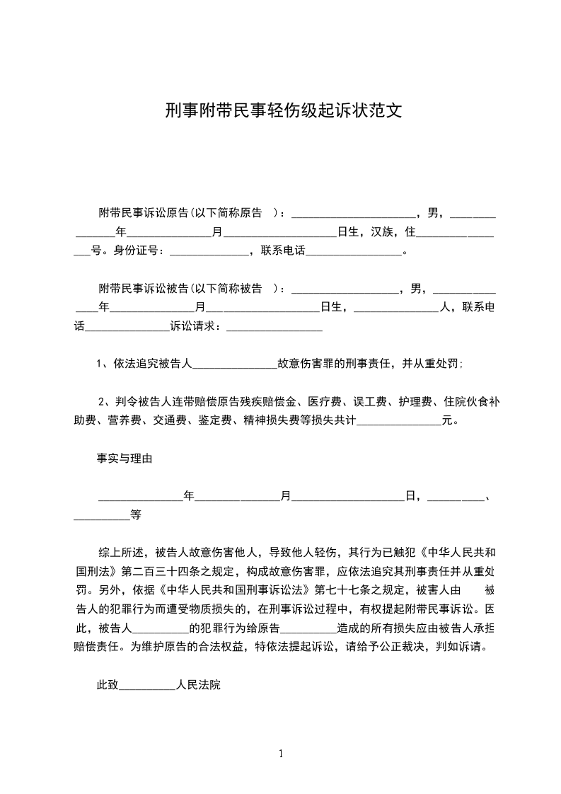 附带民事诉讼被告(以下简称被告):______________,男,_______________年_______________月_______________日生,_______________人,联系电话_______________诉讼请求:_________________