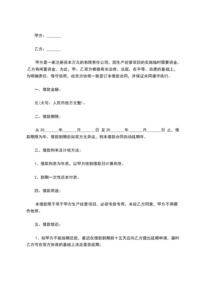甲方因扩大生产经营活动,向乙方借款,经双方友好协商,特订立本合同,并共同遵守执行。