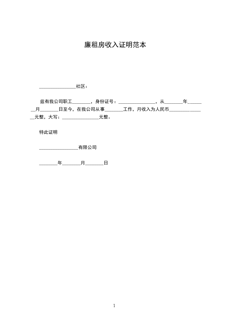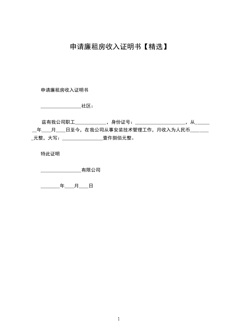 兹有我公司职工_____________,身份证号:_____________________,从________年____月____日至今,在我公司从事安装技术管理工作,月收入为人民币_________元整,大写:_________________壹仵捌佰元整。