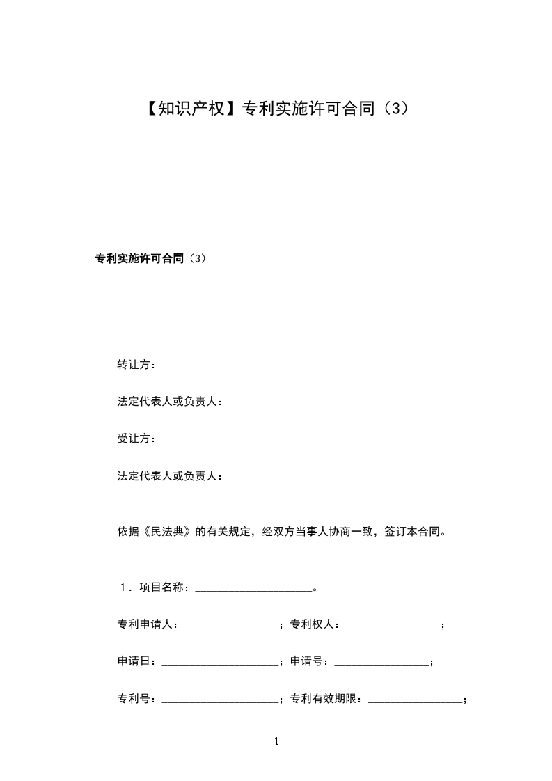 (1)向转让方支付许可证使用费、数额为_______。