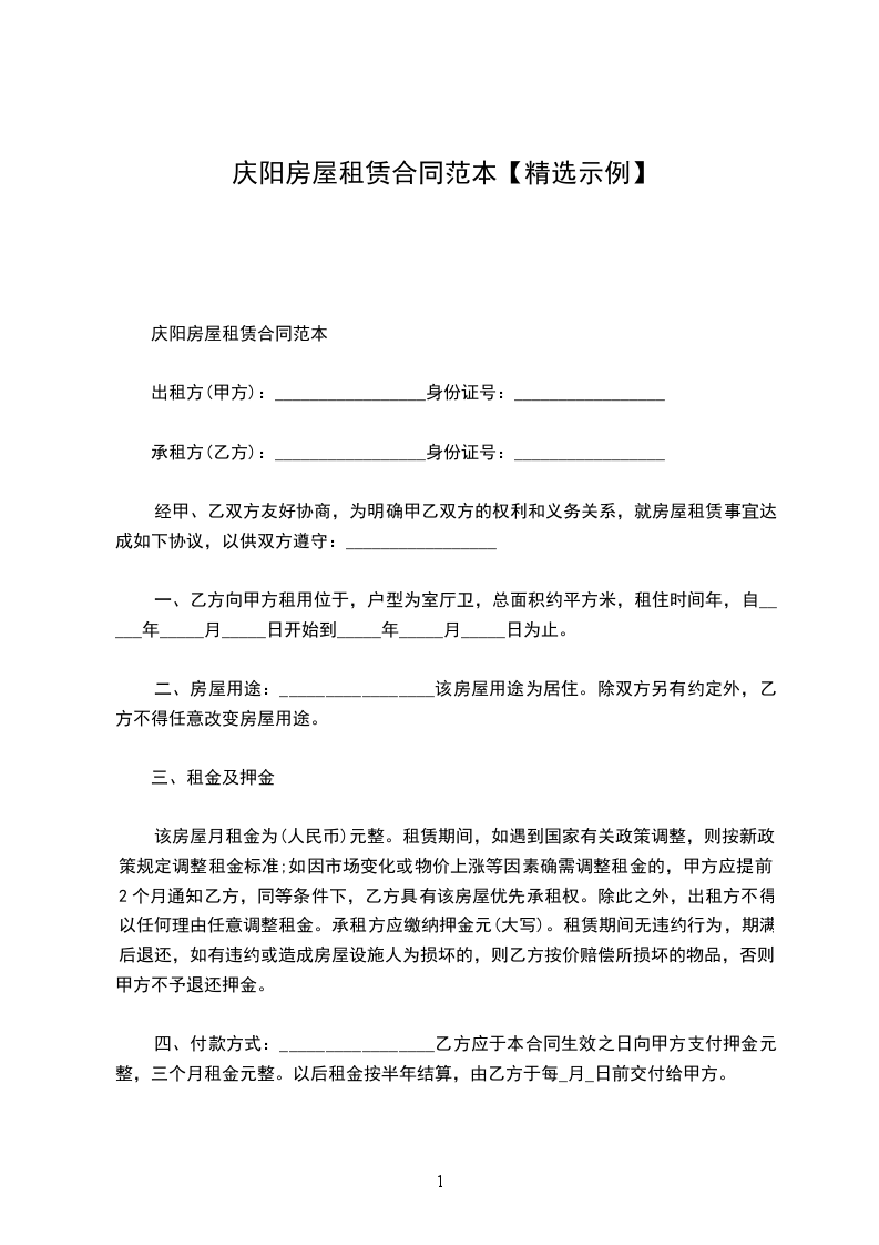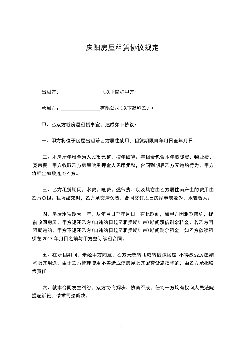 一、甲方将位于房屋出租给乙方居住使用,租赁期限自_____年_____月_____日至_____年_____月_____日。