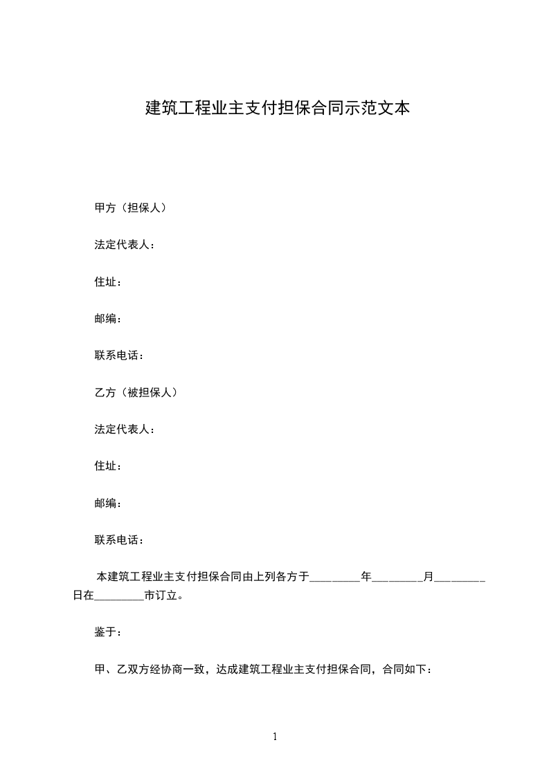 甲、乙双方经协商一致,达成建筑工程业主支付担保合同,合同如下: