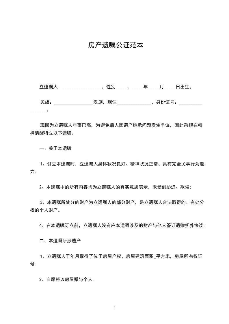 1、立遗嘱人于年月取得了位于房屋产权,房屋建筑面积_平方米,房屋所有权证号: