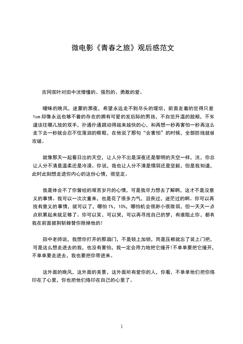 吉冈双叶对田中洸懵懂的、强烈的、勇敢的爱。