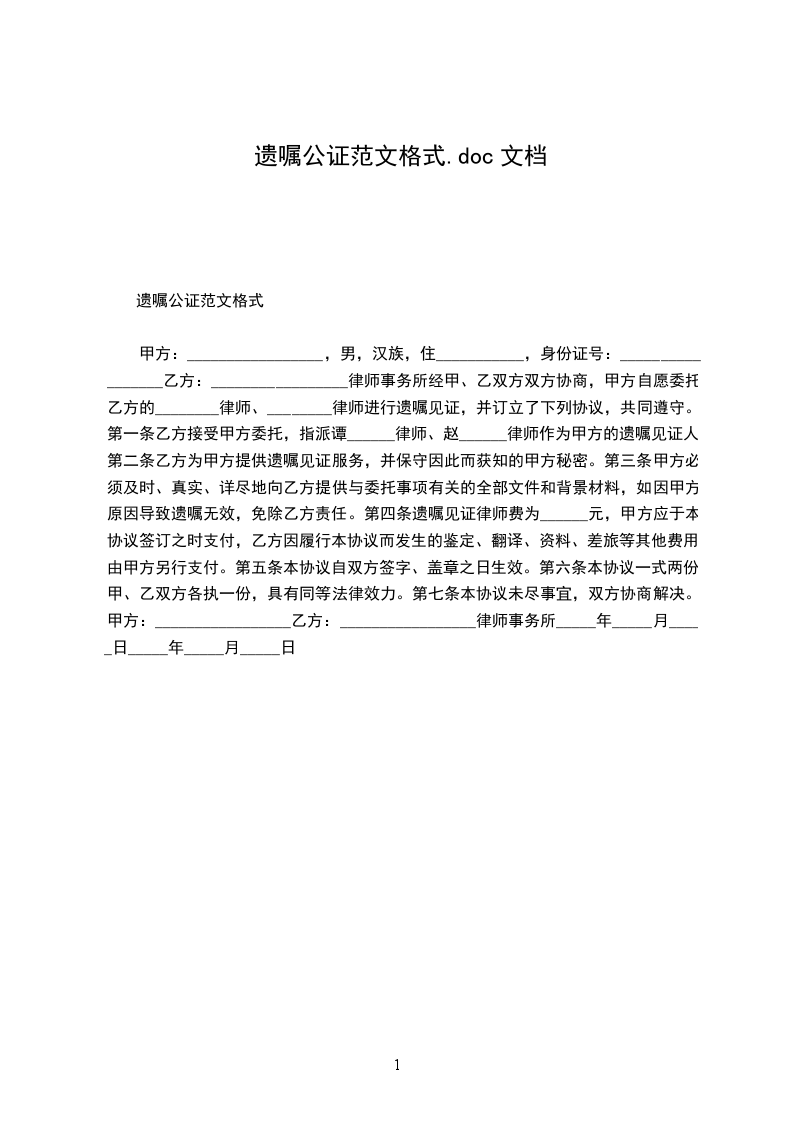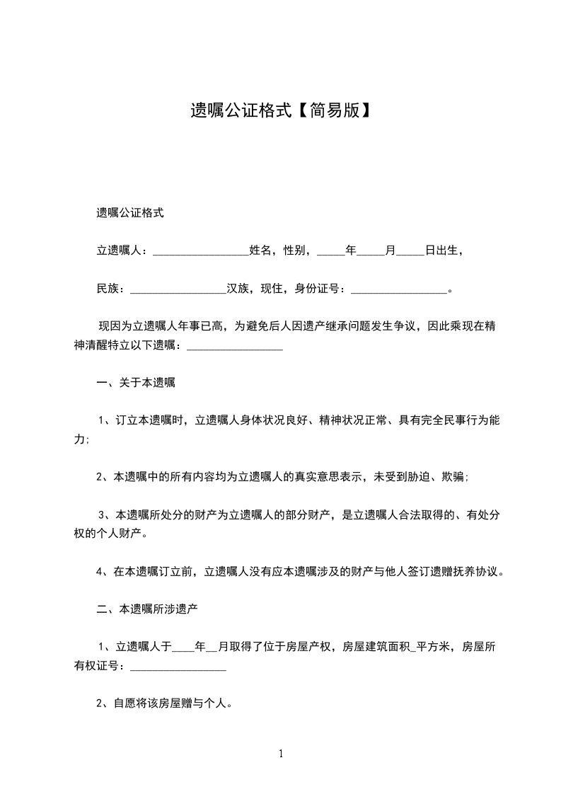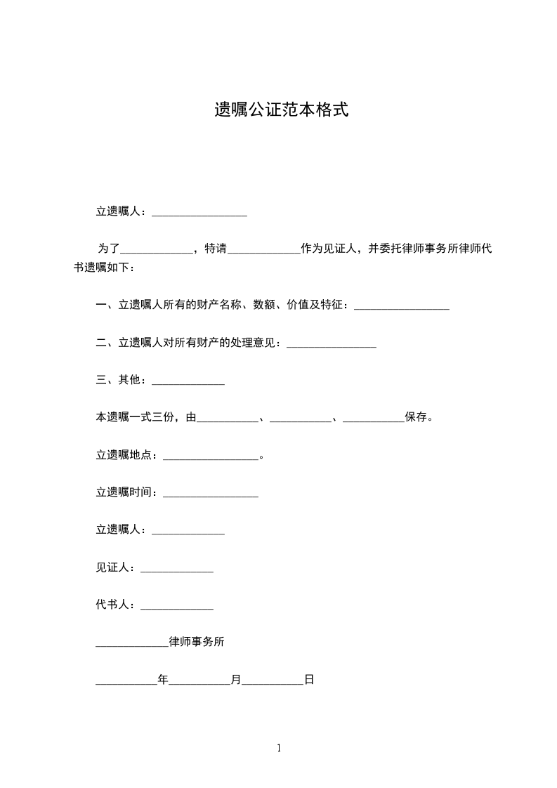 1、本遗嘱一式三份,由、、公证处各执一份。