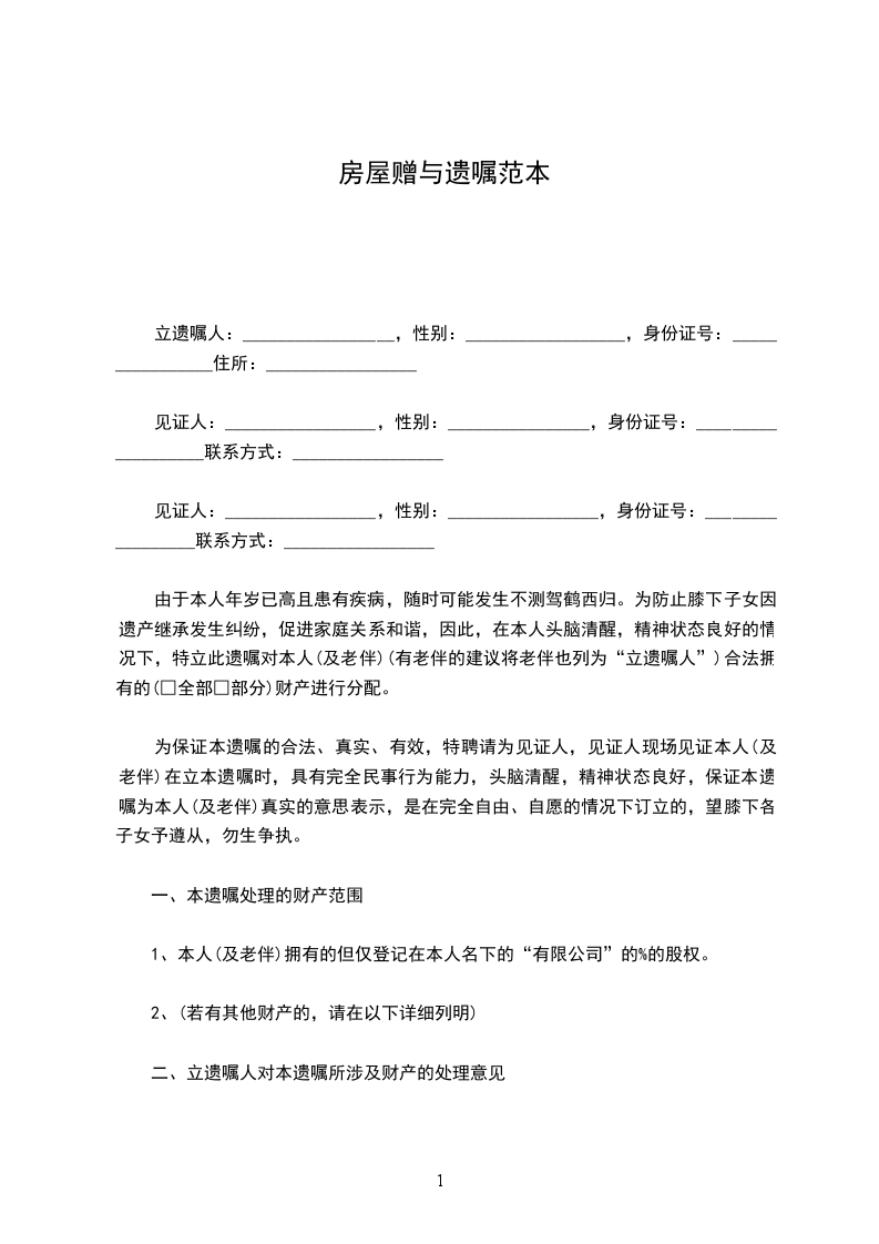 一、本遗嘱处理的财产范围