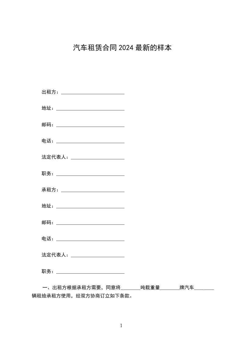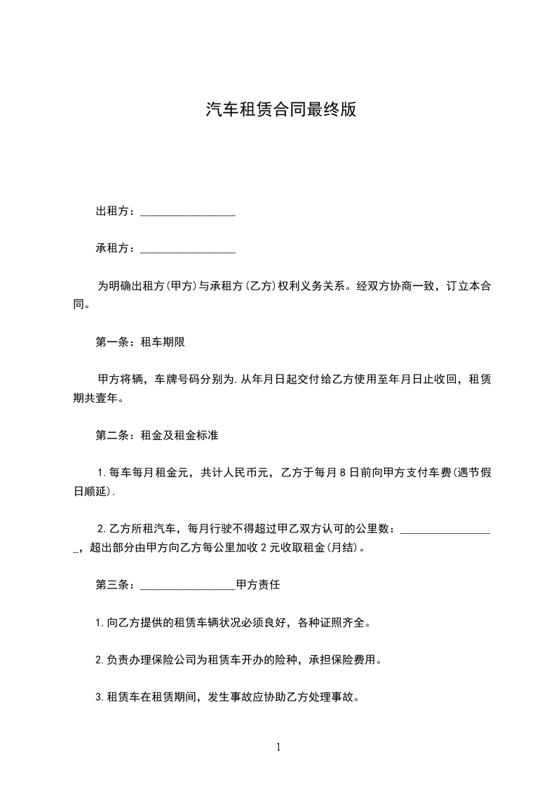 根据《民法典》的有关规定,按照平等互利的原则,为明确出租方与承租方的权利义务,双方经友好协商,就_________车的租赁事宜达成一致意见,同意按下列条款签订本协议。