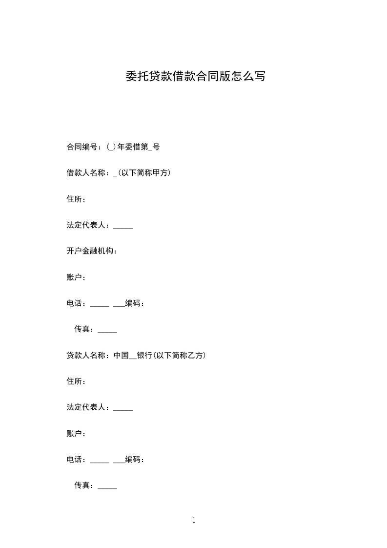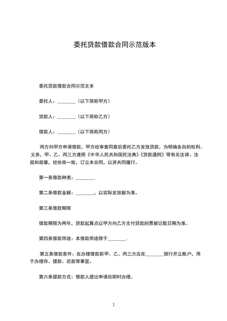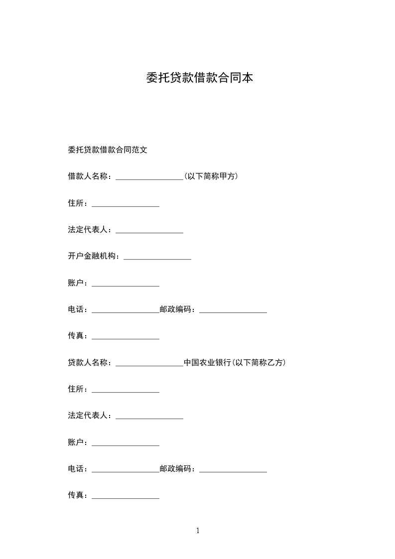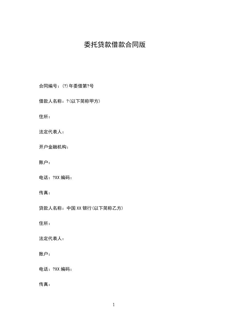 乙方接受委托人委托,根据国家有关委托贷款业务管理规定向甲方发放(币种)资金委托贷款。甲、乙双方按(?)年委托第?号《委托贷款委托合同》约定的条款和委托人?年?月?日提出的《委托贷款通知单》所列各项,并遵照国家有关法律规定,经协商一致,按以下条款订立本合同。