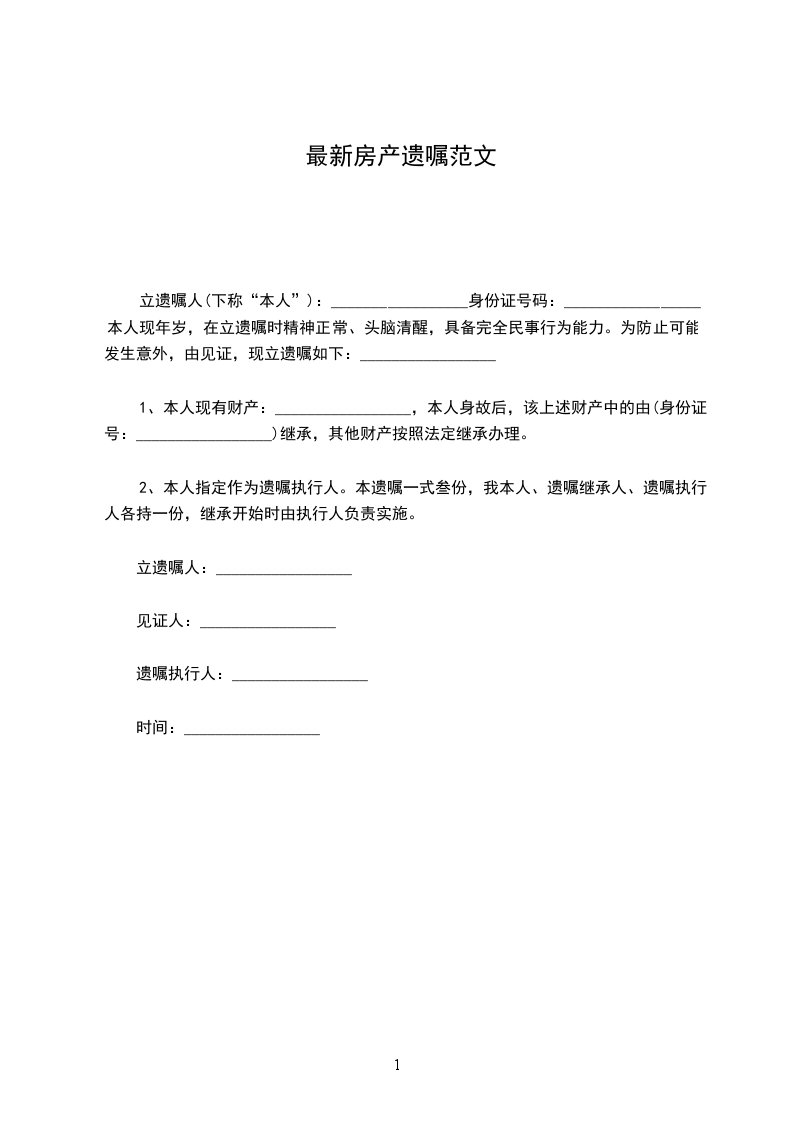 立遗嘱人(下称“本人”):_________________身份证号码:_________________本人现年岁,在立遗嘱时精神正常、头脑清醒,具备完全民事行为能力。为防止可能发生意外,由见证,现立遗嘱如下:_________________