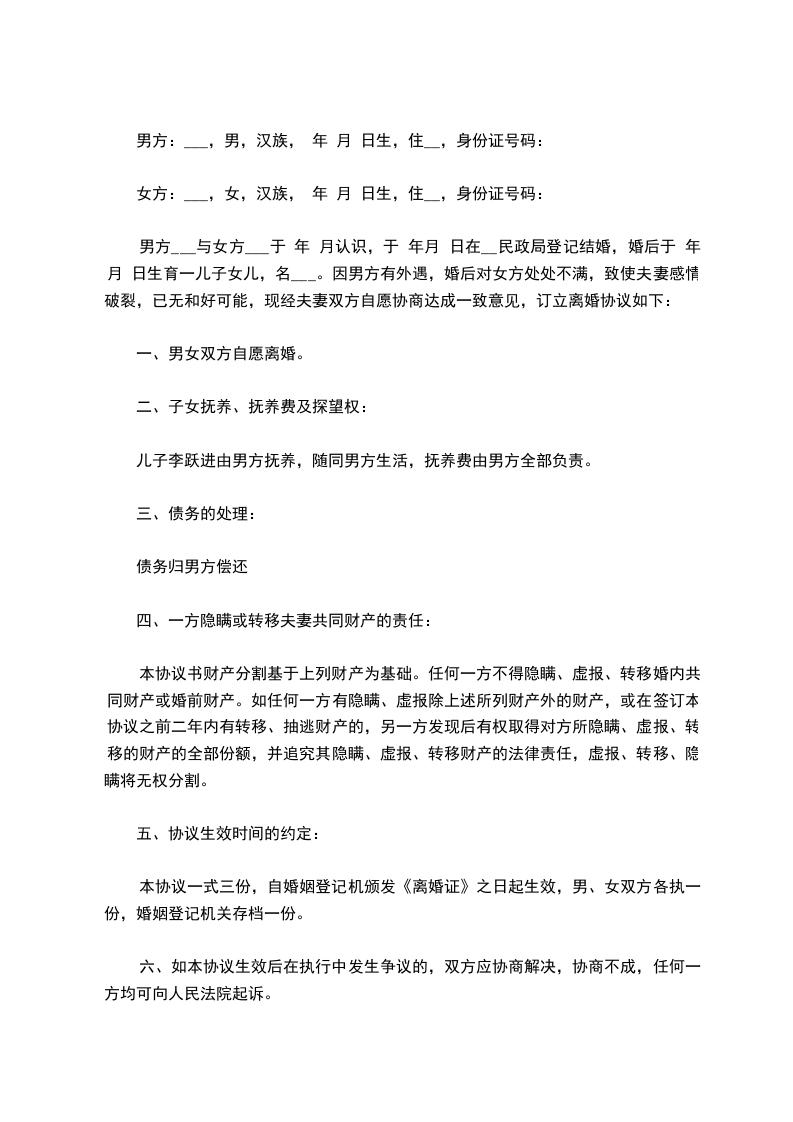 男方:_________________,汉族,_______年_______月_______日出生,现住:_________________,身份证号:_________________。