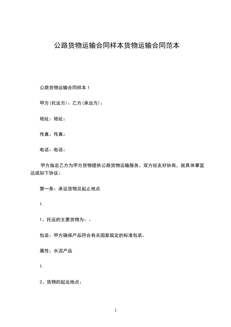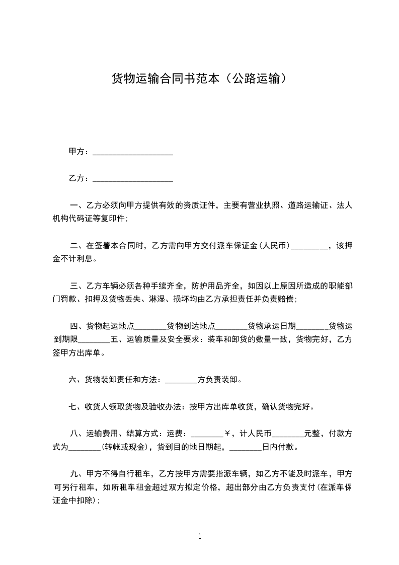 甲方指定乙方为甲方货物提供公路货物运输服务。双方经友好协商,就具体事宜达成如下协议: