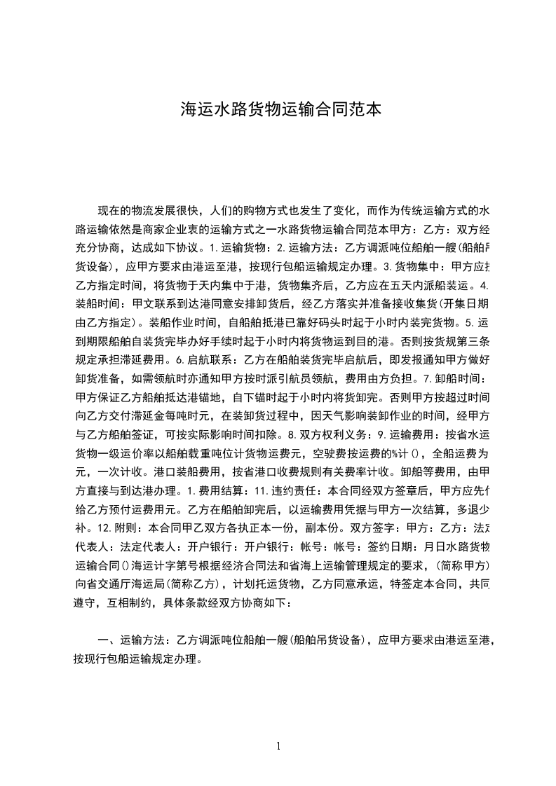 1、乙方接受甲方的委托,为其提供货物运输服务,乙方应及时操作转运货物,安全、准时、准确地将货物运至甲方指定的目的地。