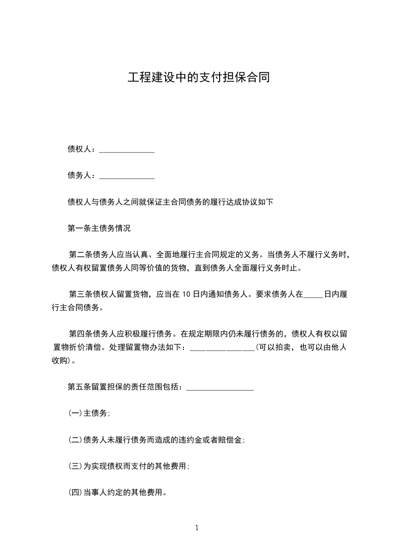 第二条债务人应当认真、全面地履行主合同规定的义务。当债务人不履行义务时,债权人有权留置债务人同等价值的货物,直到债务人全面履行义务时止。