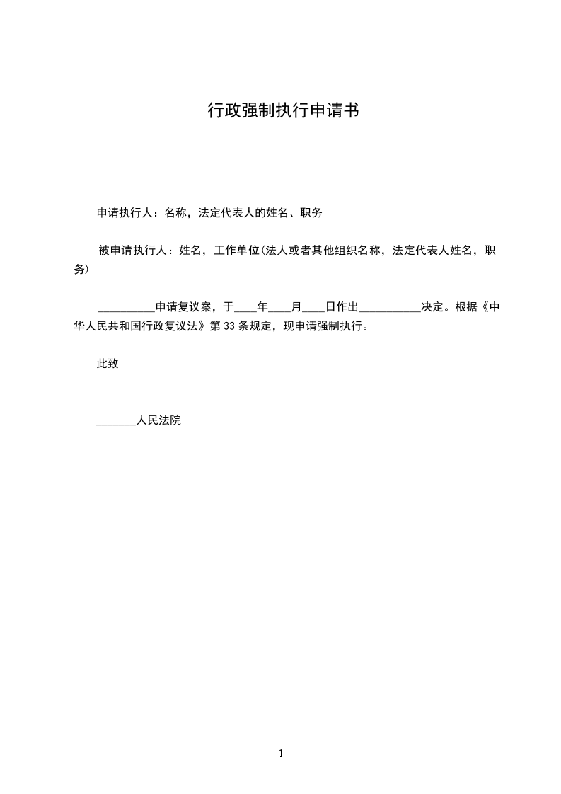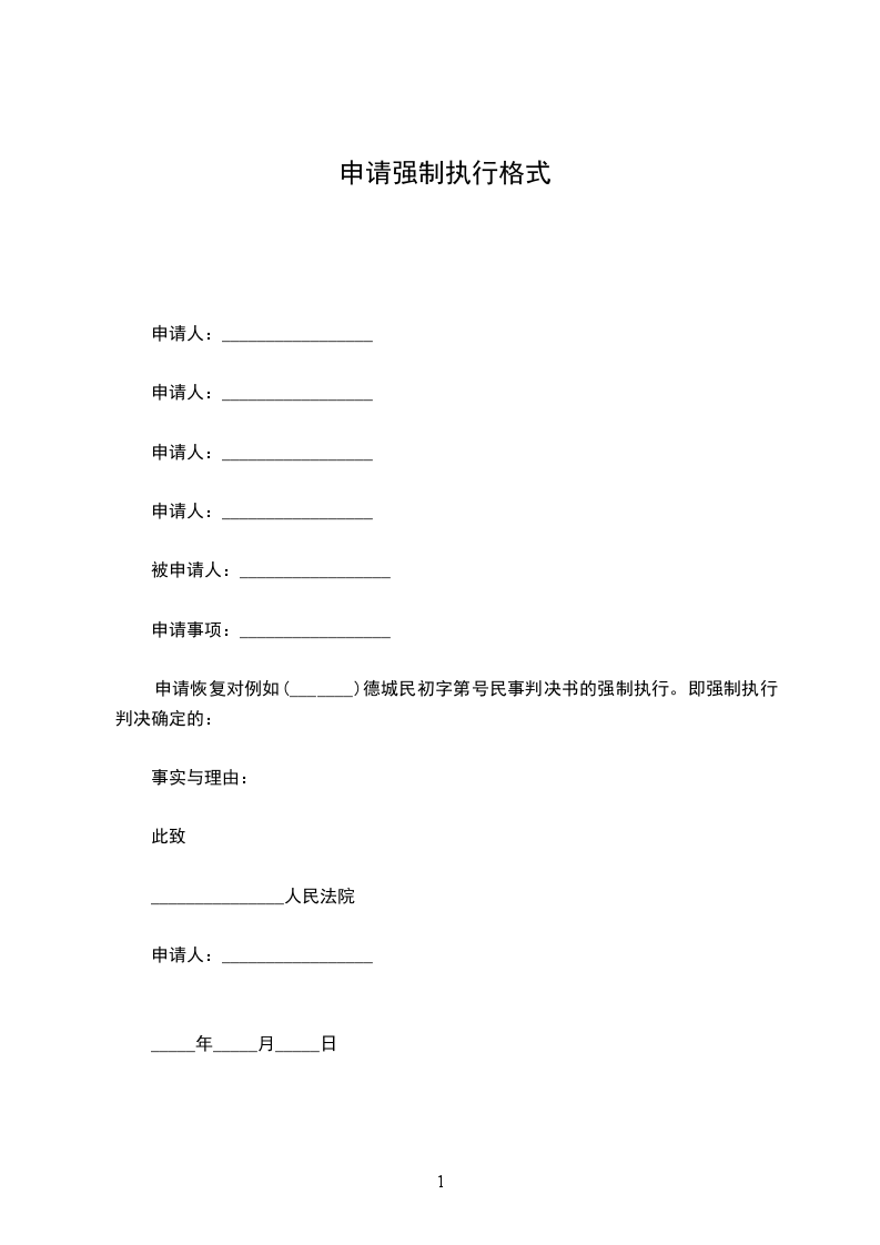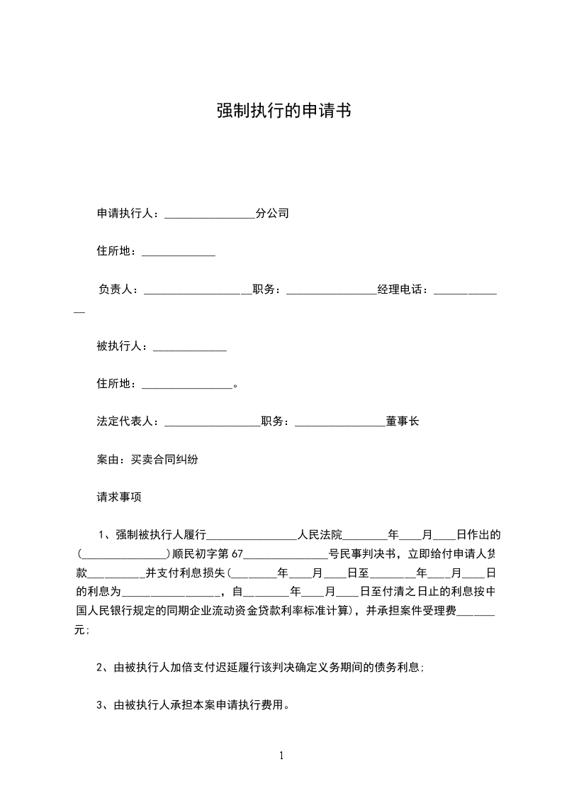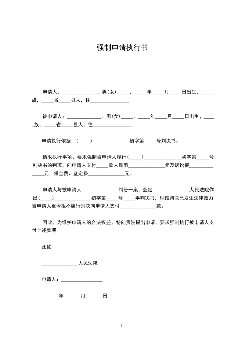 1.强制被执行人履行_________________人民法院________年____月___日作出的(______)_______初字第_______________号民事判决所确定的义务;