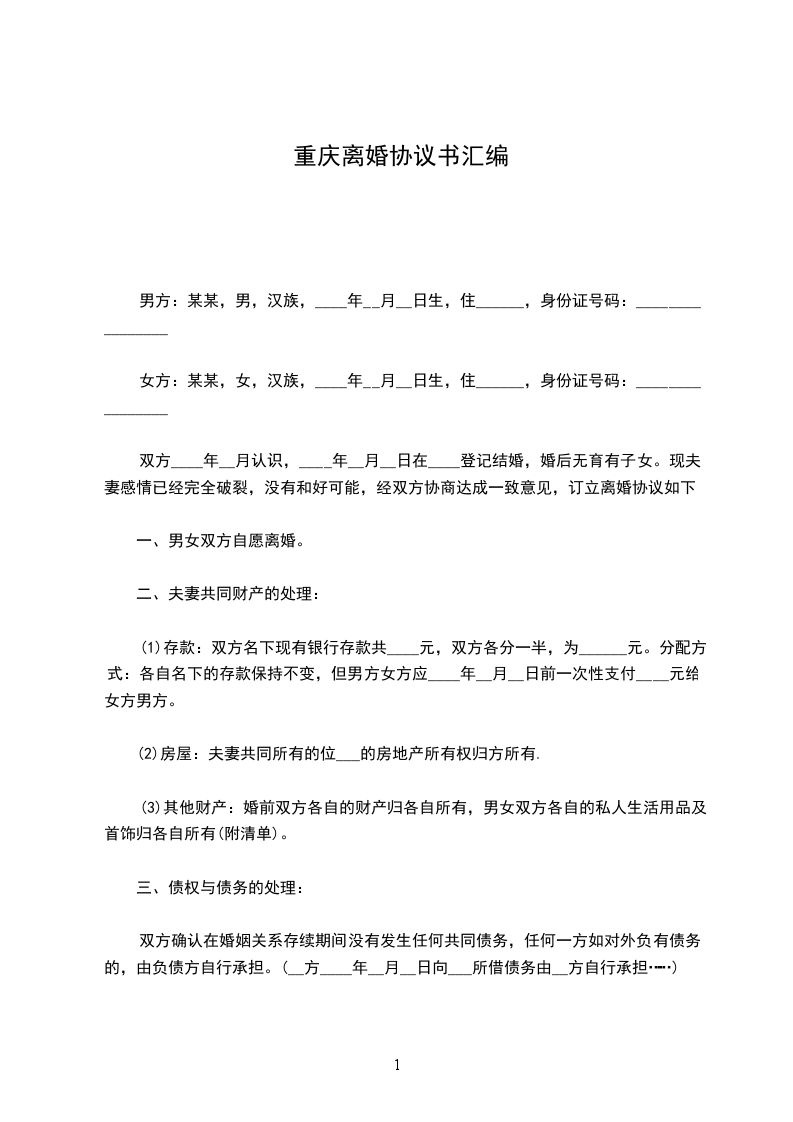 五、双方一致确认:没有夫妻共同债务。双方承诺自行承担对外所欠债务,若有任何第三人向双方主张共同债权,对外负债的名义债务人应赔偿因此给夫妻另一方造成的所有损失。
