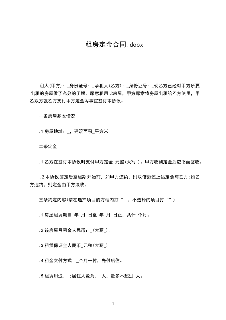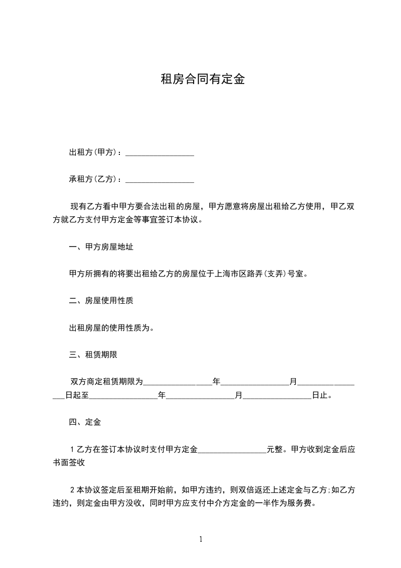 2.本协议签定后至租期开始前,如甲方违约,则双倍返还上述定金与乙方;如乙方违约,则定金由甲方没收。