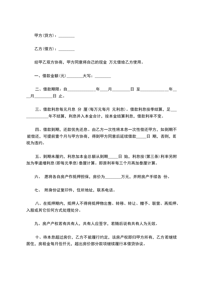 第三条?借款期限____年,自____年__月__日起至____年__月__日止,利率按月息____厘____毫计息,每次还款同时计收利息。