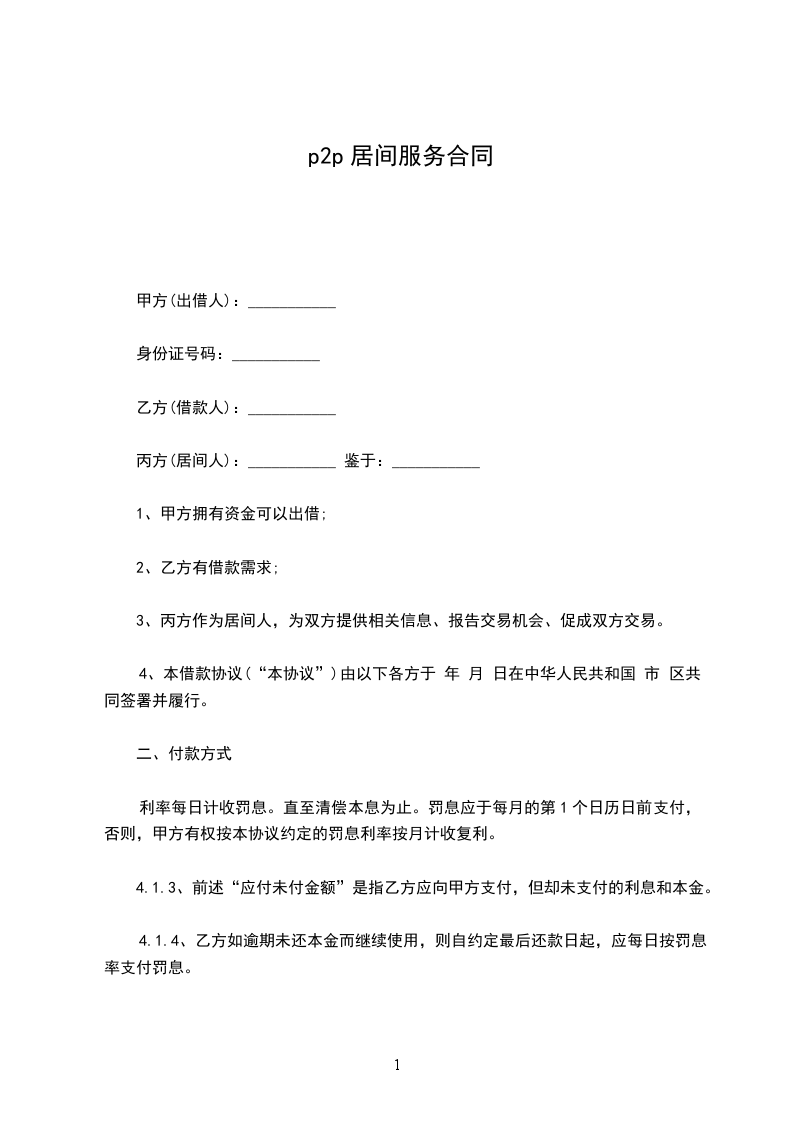 2.3、乙方收到甲方的借款后,由乙方通过 方式将居间费用汇入到本协议第一条约定的丙方专用账号中。