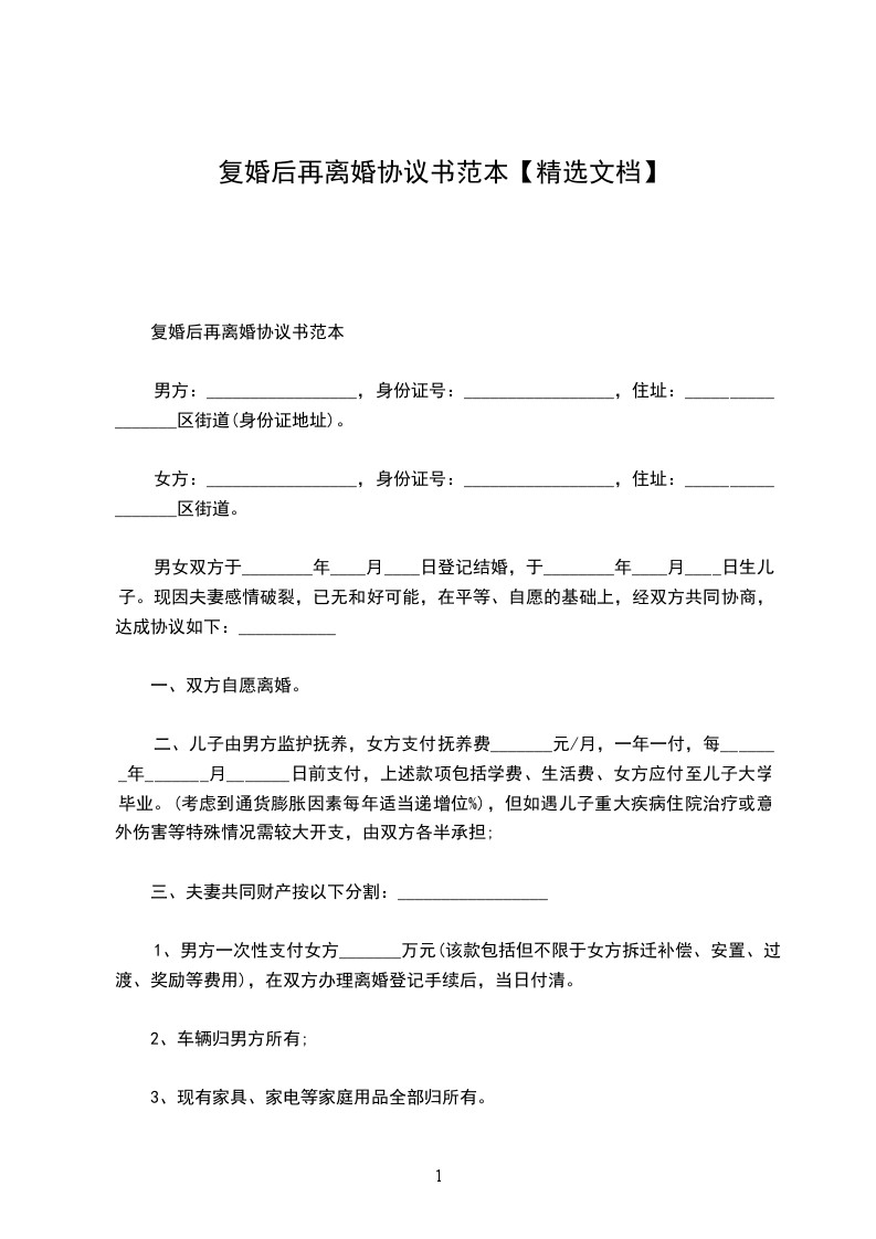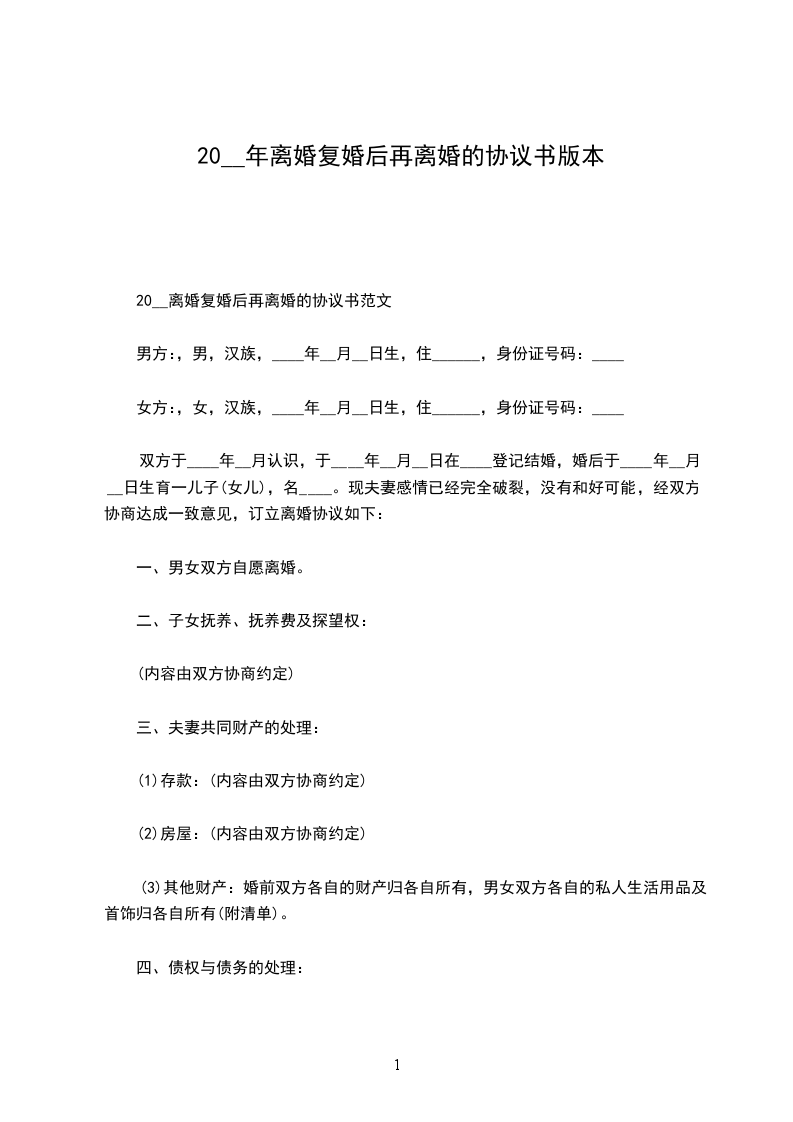 双方于____年__月认识,于____年__月__日在____登记结婚,婚后于____年__月__日生育一儿子(女儿),名____。现夫妻感情已经完全破裂,没有和好可能,经双方协商达成一致意见,订立离婚协议如下: