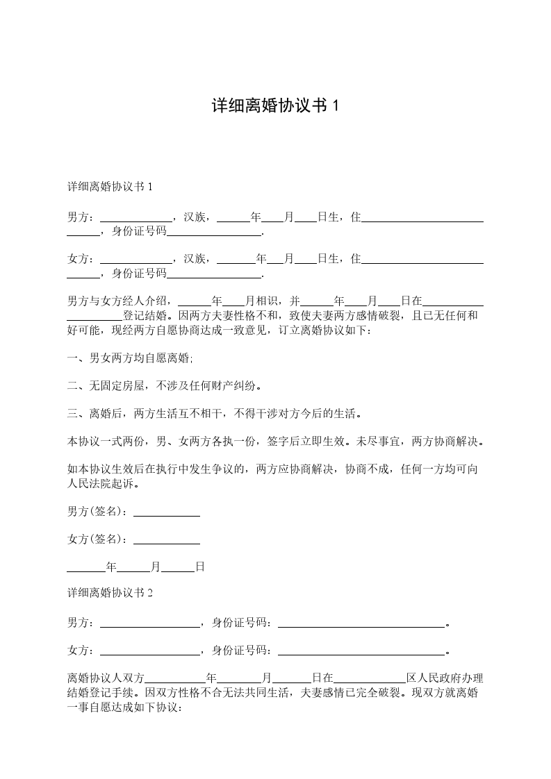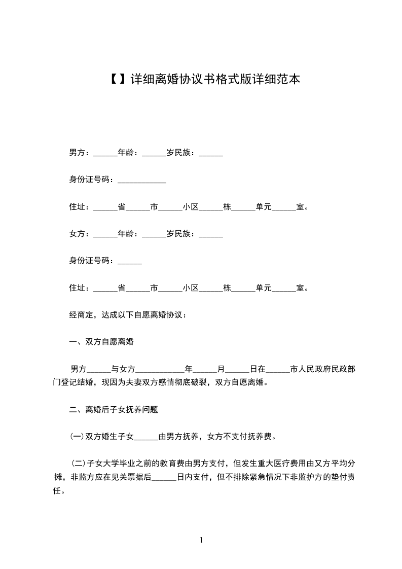 一、男女双方自愿离婚。