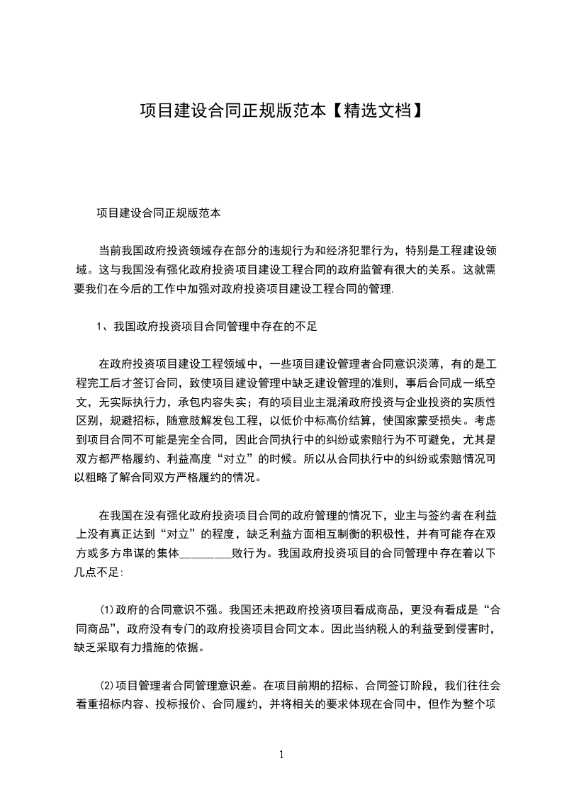 1、我国政府投资项目合同管理中存在的不足