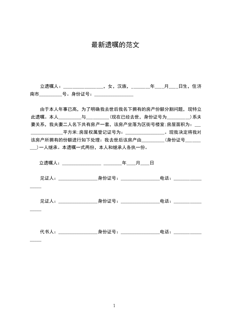 立遗嘱人:______________,男,_____________,民族,岁,_______________省_______________县人,住___________县__________街___________号,身份证号码号码:_________________。