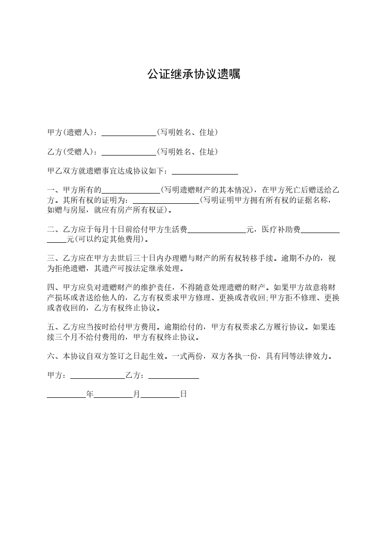 本遗嘱一式三份,分别有__________、__________、_____各执一份。