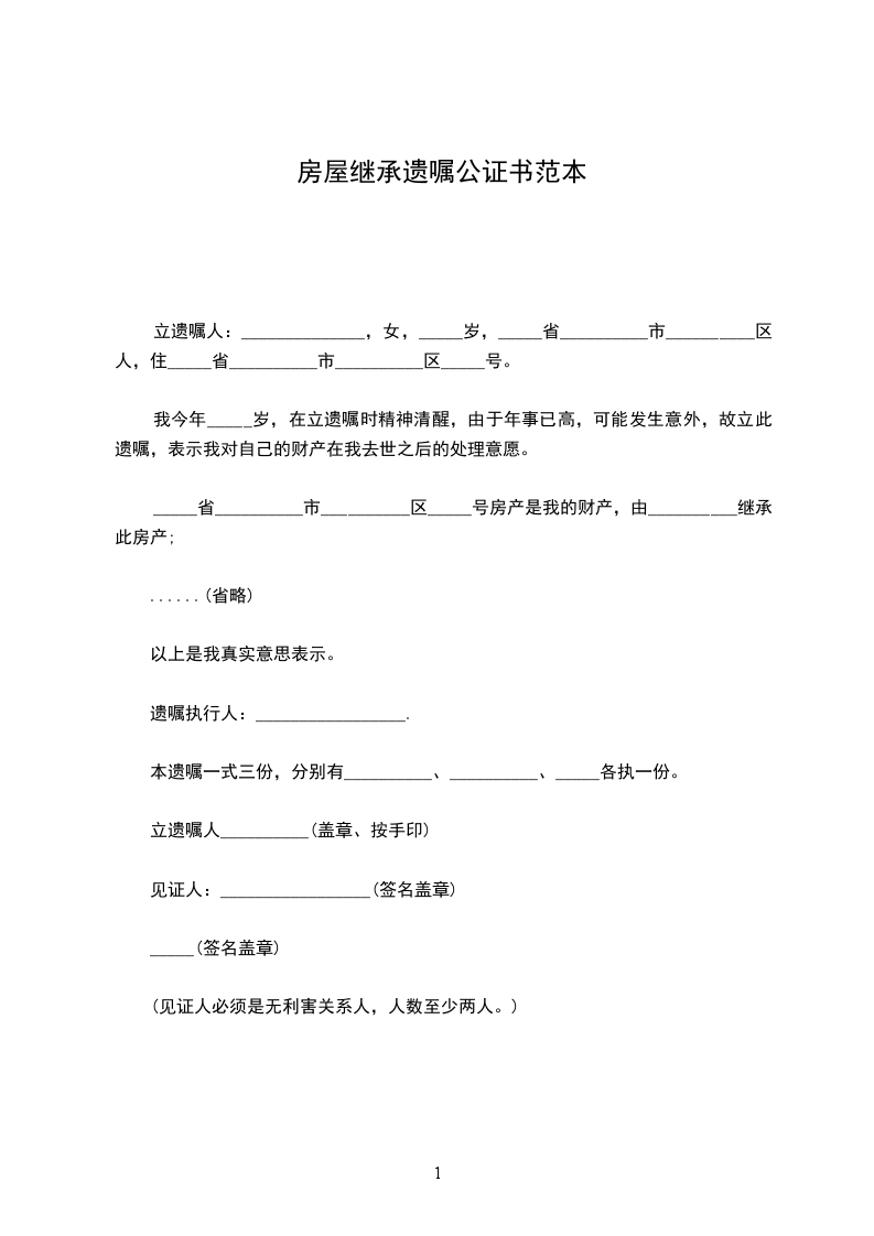 _____省__________市__________区_____号房产是我的财产,由__________继承此房产;