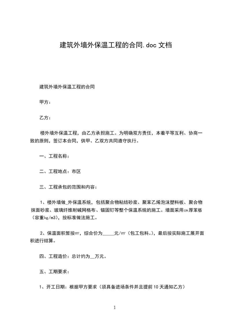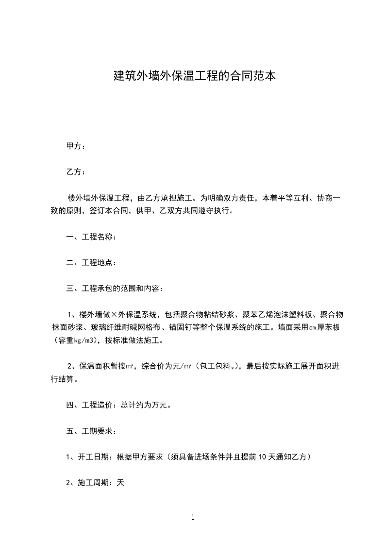 2、保温面积暂按㎡,综合价为_____元/㎡(包工包料。),最后按实际施工展开面积进行结算。