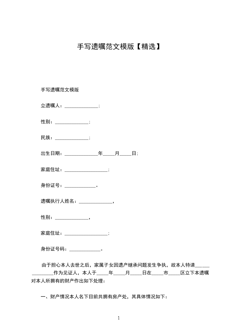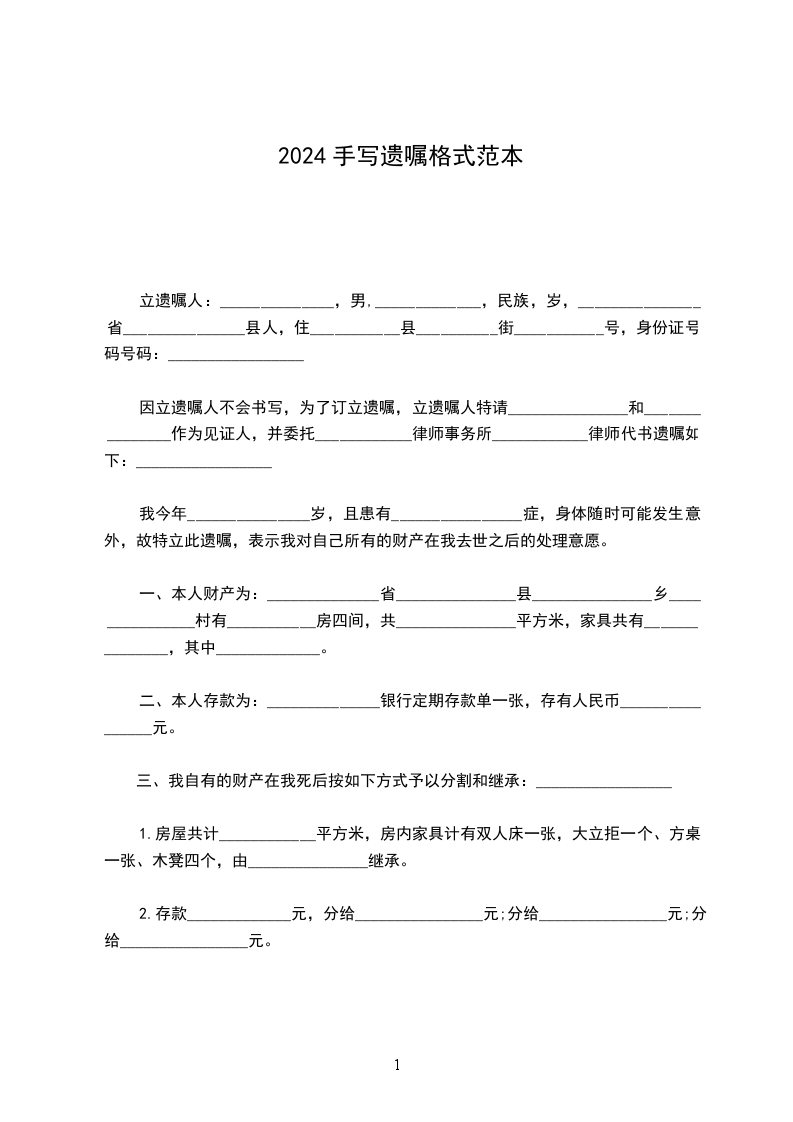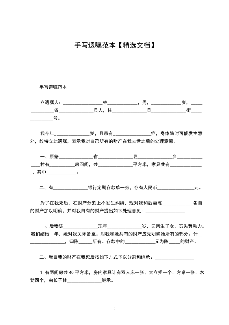 我遗留给 _________________ 的财产,仅限 _________________ 个人,是遗留给 _________________ 的个人财产。