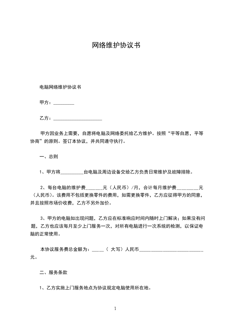 甲方因业务上需要,自愿将电脑及网络委托给乙方维护。按照“平等自愿,平等协商”的原则。签订本协议,以资双方共同遵守执行。