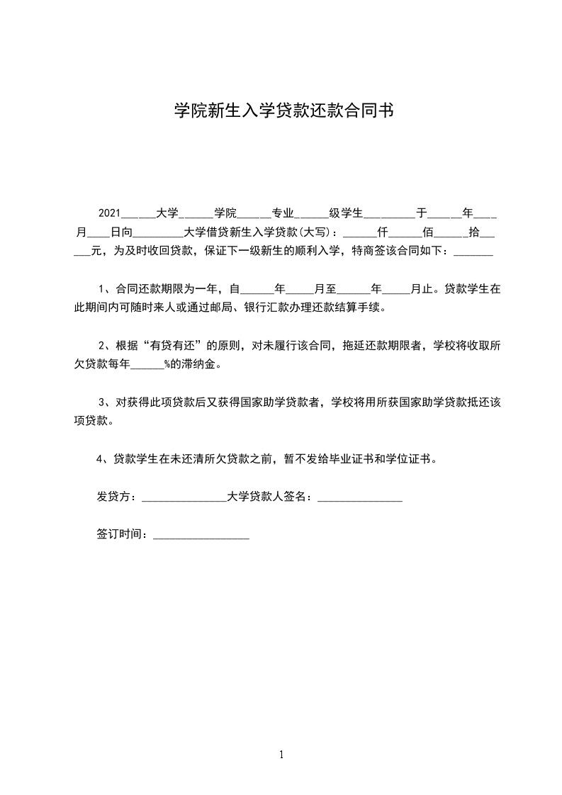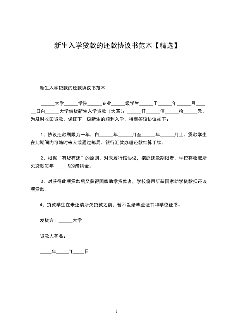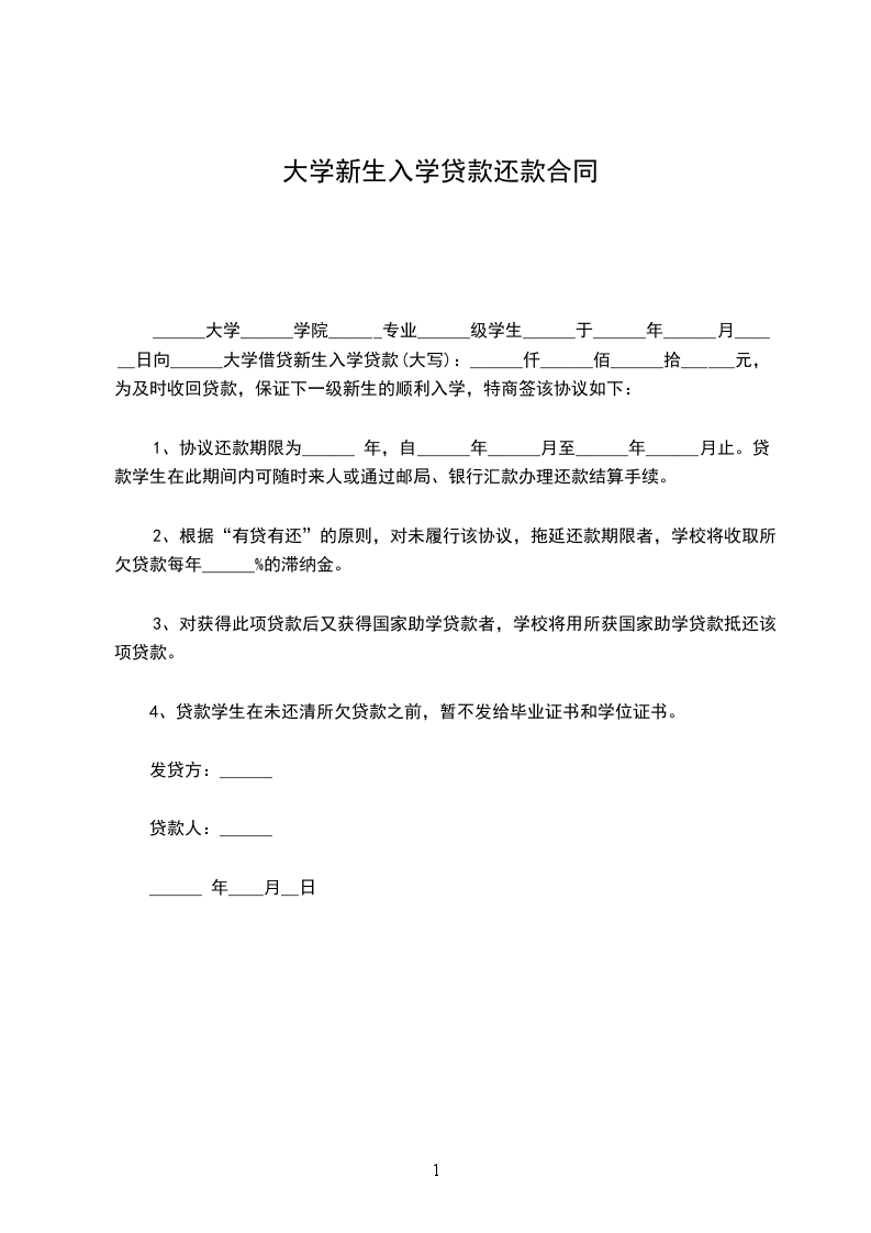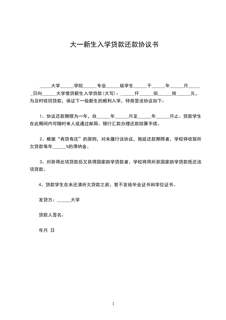 ______大学______学院______专业______级学生______于______年______月______日向______大学借贷新生入学贷款(大写):______仟______佰______拾______元,为及时收回贷款,保证下一级新生的顺利入学,特商签该协议如下:
