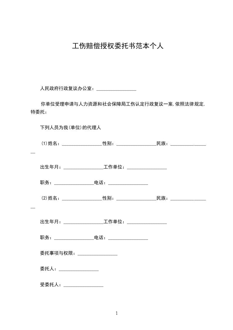你单位受理申请与人力资源和社会保障局工伤认定行政复议一案,依照法律规定,特委托: