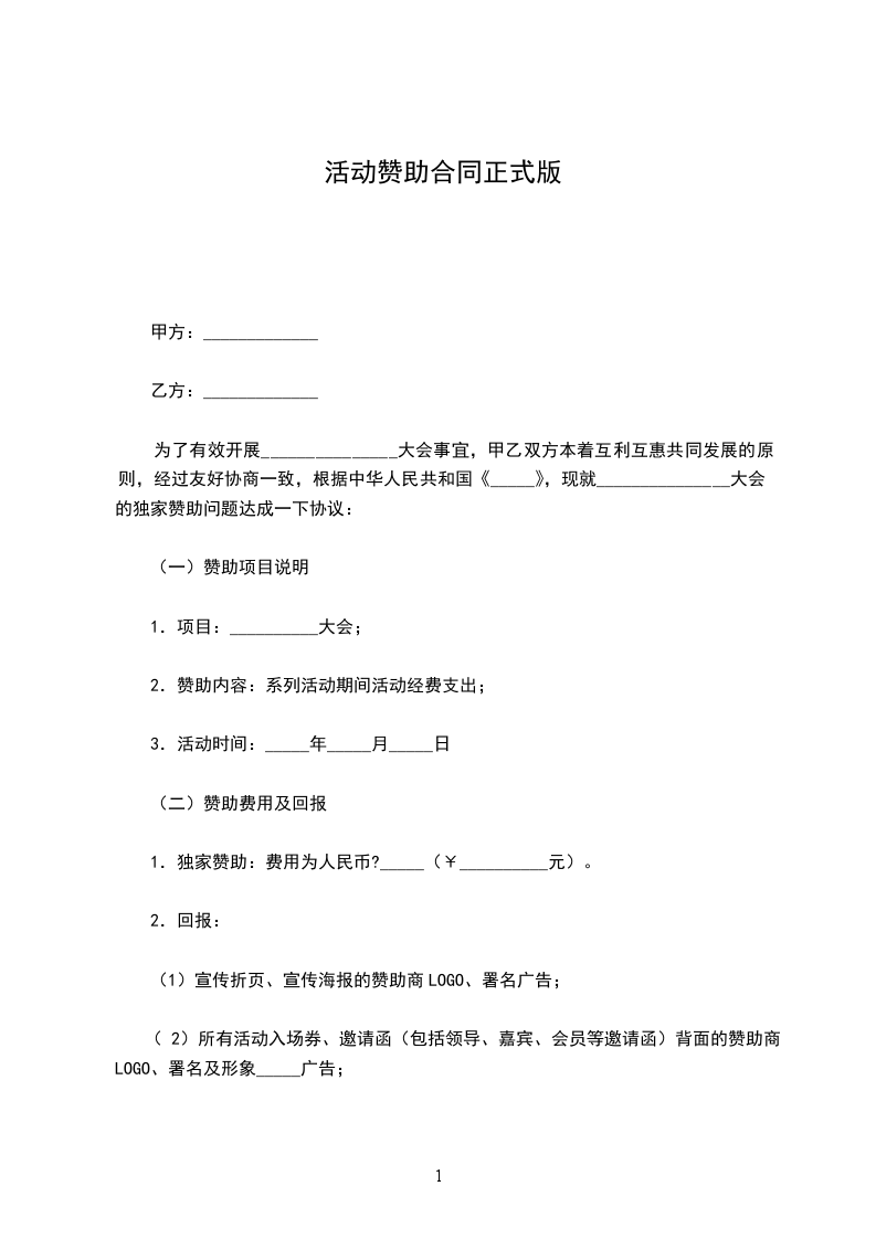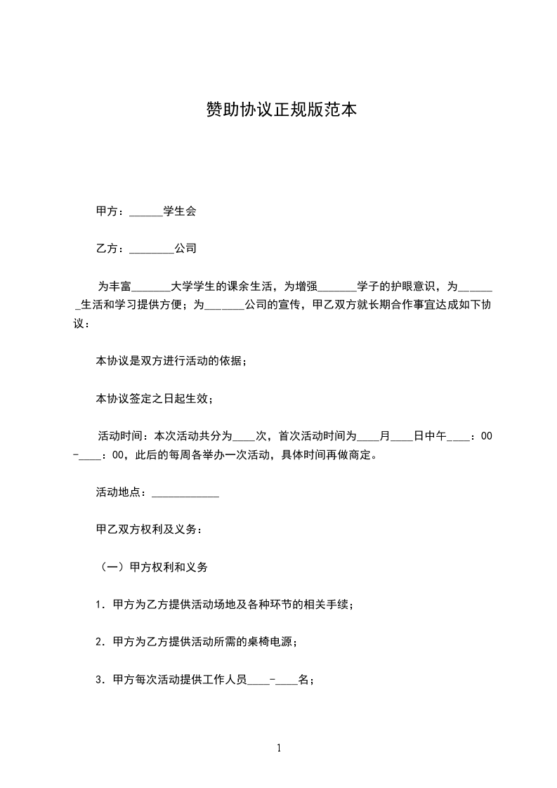 甲、乙双方就________及以后举行的活动的有关事宜,经协商达成以下协议: