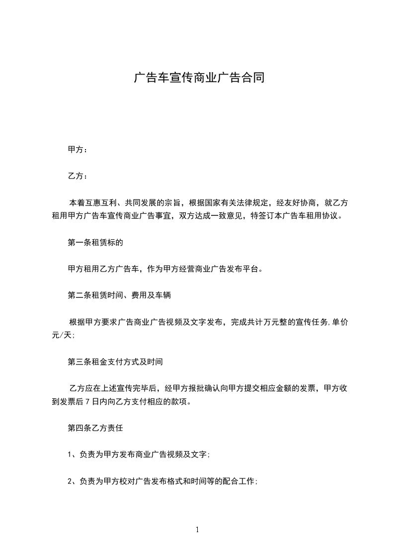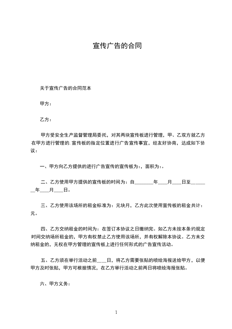 关于宣传广告的合同范本
