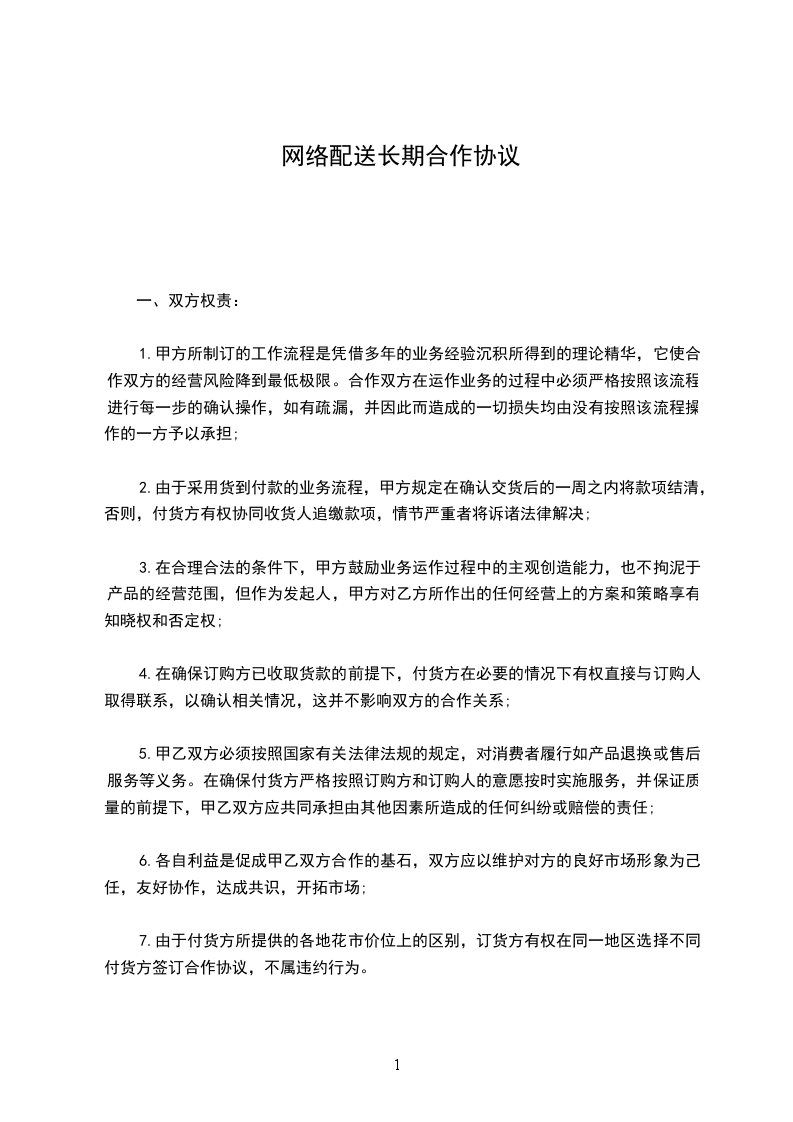订立本协议旨在建立跨地区的经营架构的同时,使网络配送服务的价格趋于合理化,并真正成为大多数消费对象所普遍认可的一种消费形式,从而架起传递情感的桥梁。
