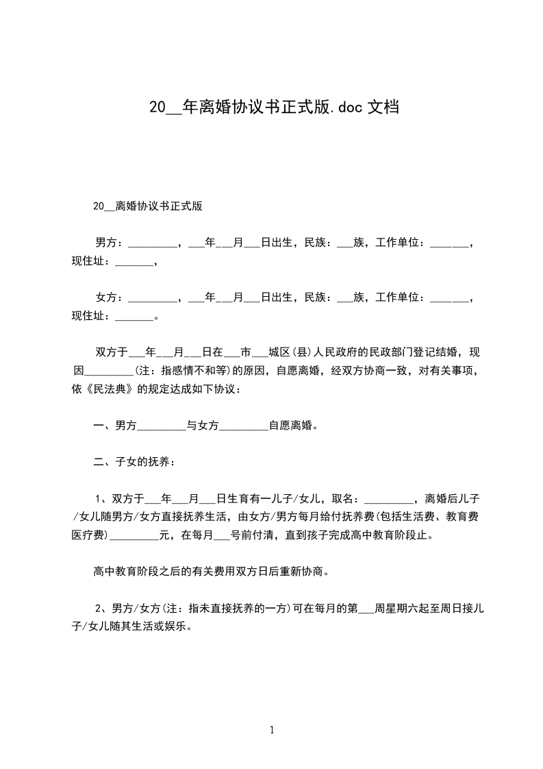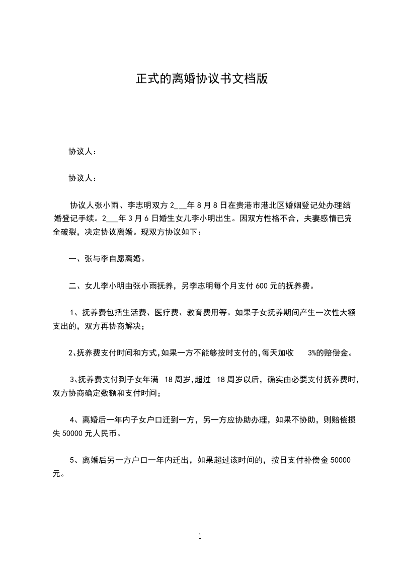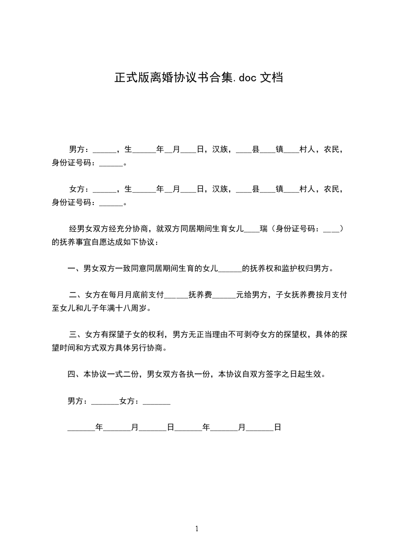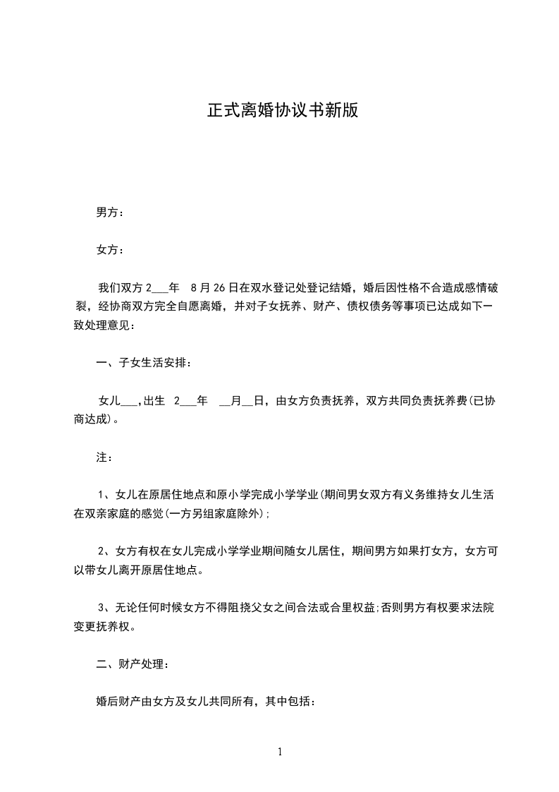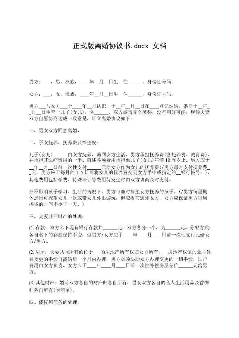 男方:_________________ 女方:_________________ 男方与女方现因夫妻感情彻底破裂自愿离婚,经双方商定,对有关事项达成以下协议: 一、双方婚生女___________由男方抚养,女方每月___________日前支付共计__________元人民币抚养费。女方每月逢双周周六上午九点到男方处接孩子探视,于当日下午七点之前送回男方住处。 二、双方共同财产分割方案如下: 夫妻双方共有的位于上海市______路______弄______号__________室房屋登记在双方名下,系双方共同财产。现双方约定: 离婚后,该套房屋归男方所有,女方配合男方办理产权变更登记手续。因办理产权变更登记手续所应支付的一切税费由男方承担。为保障子女的居住和生活环境,女方放弃该套房产的共同财产分割折价款。 三、女方自愿自筹_______________元人民币作为父母义务抚养子女期间的医疗费用,若以上钱款不足以支付以上医疗费用,超出_______________部分,由男方承担。 四、双方各自名下的其它财产归各自所有。 五、夫妻双方在婚姻关系存续期间内无其它共同债权债务;个人名下的债权债务离婚后由各自享有和承担。 上述协议事项,双方保证切实履行;协议内容如有隐瞒、欺骗、责任自负。 立协议人:_________________ 男方:_________________(签字)女方:_________________(签字) ________年____月____日________年____月____日