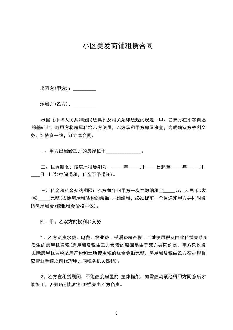 一、甲方将位于__________市__________街道__________小区_____号楼_____________号的房屋出租给乙方居住使用,租赁期限自__________年__________月__________日至__________年__________月__________日,计_____个月。