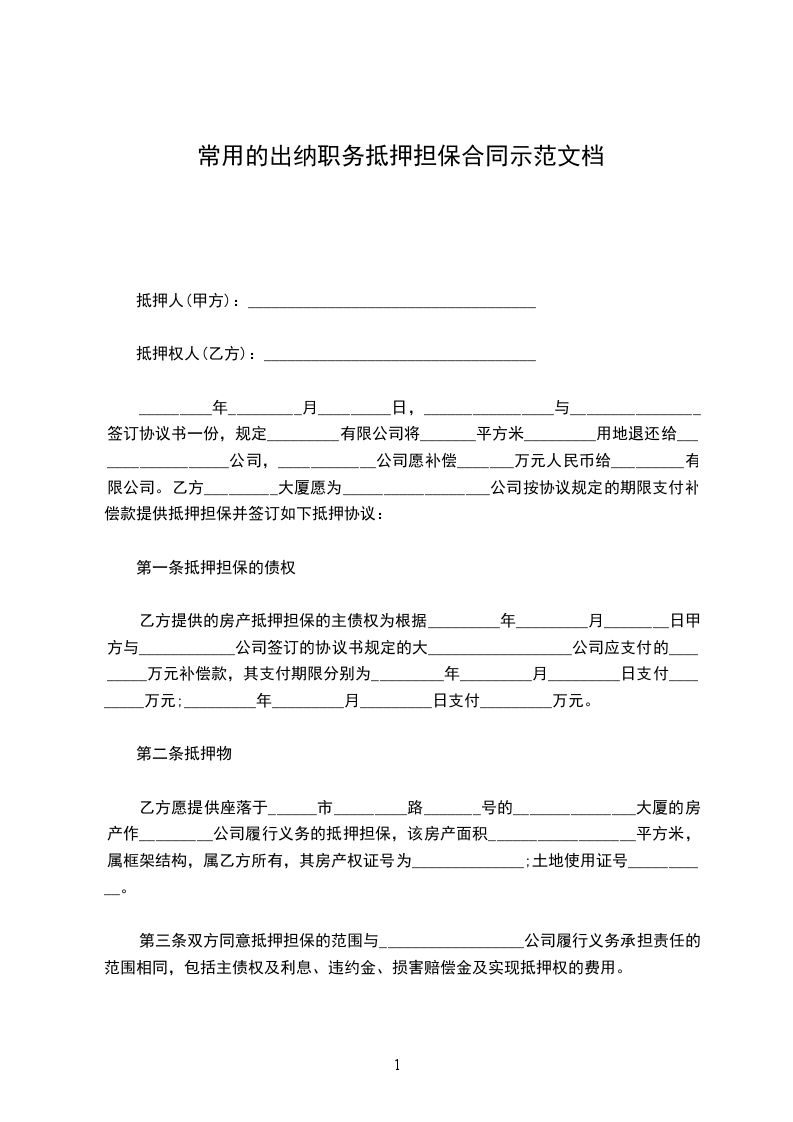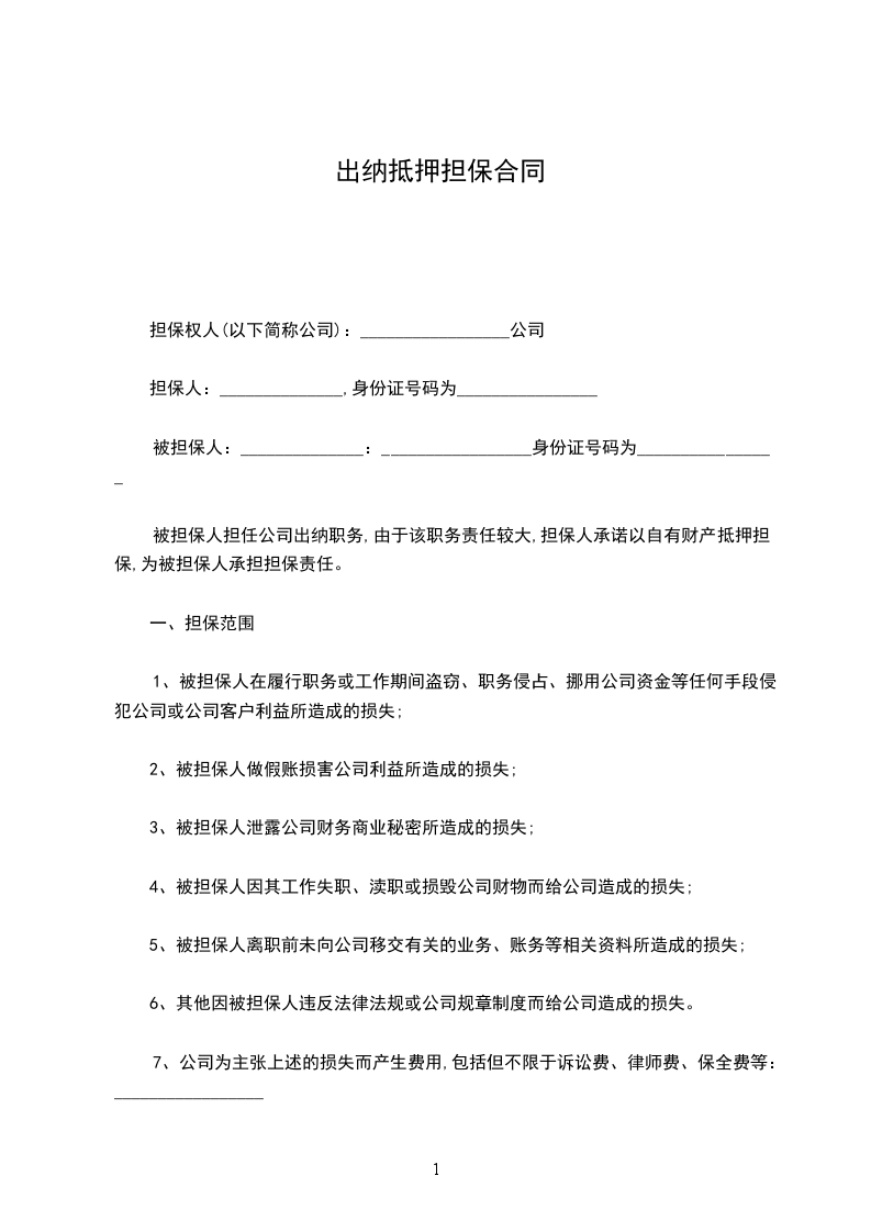 1、担保人以下列有处分权的财产对违反第一条担保范围约定给公司造成的损失承担抵押担保责任,如下列财产不足以弥补被担保人